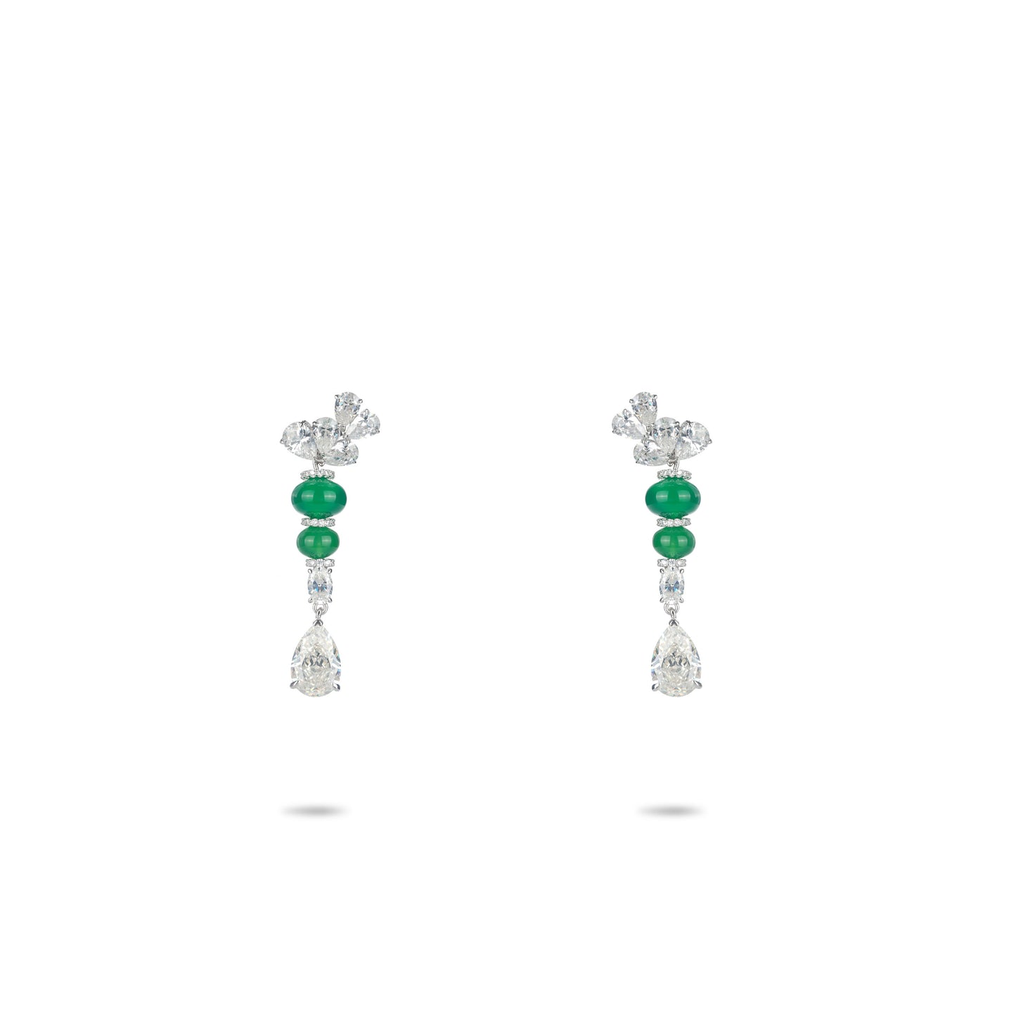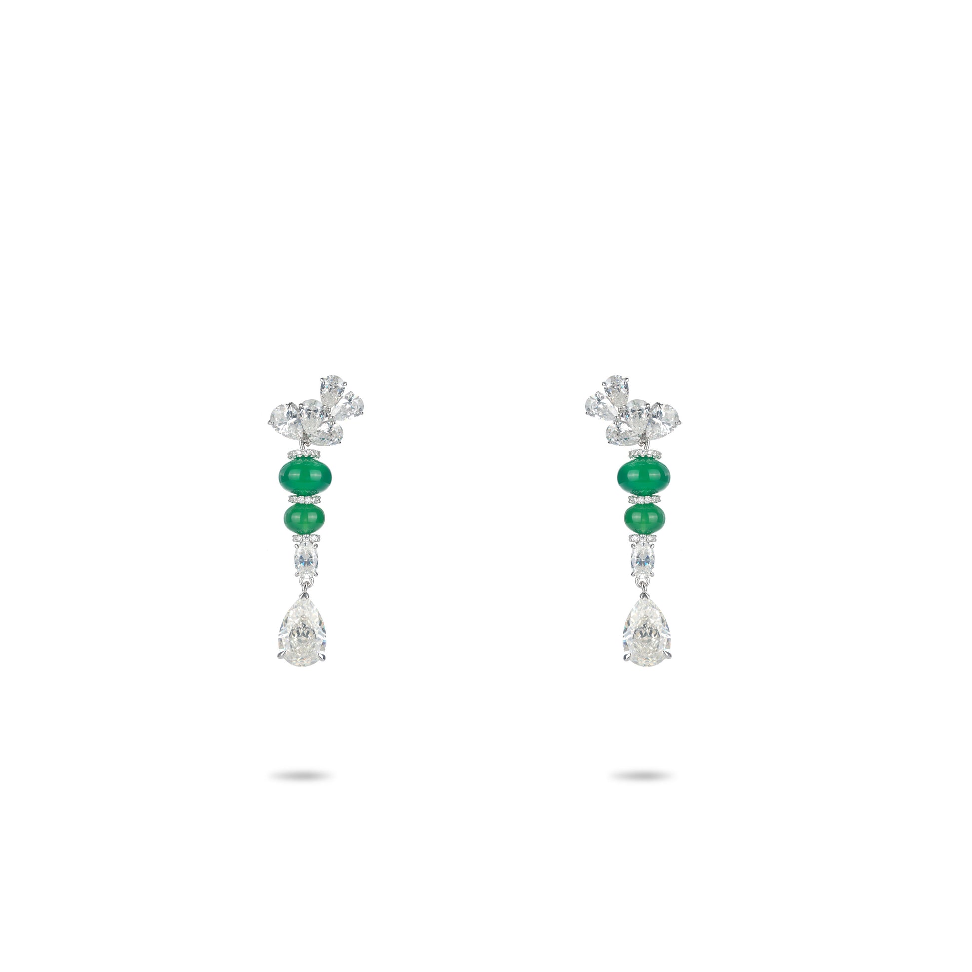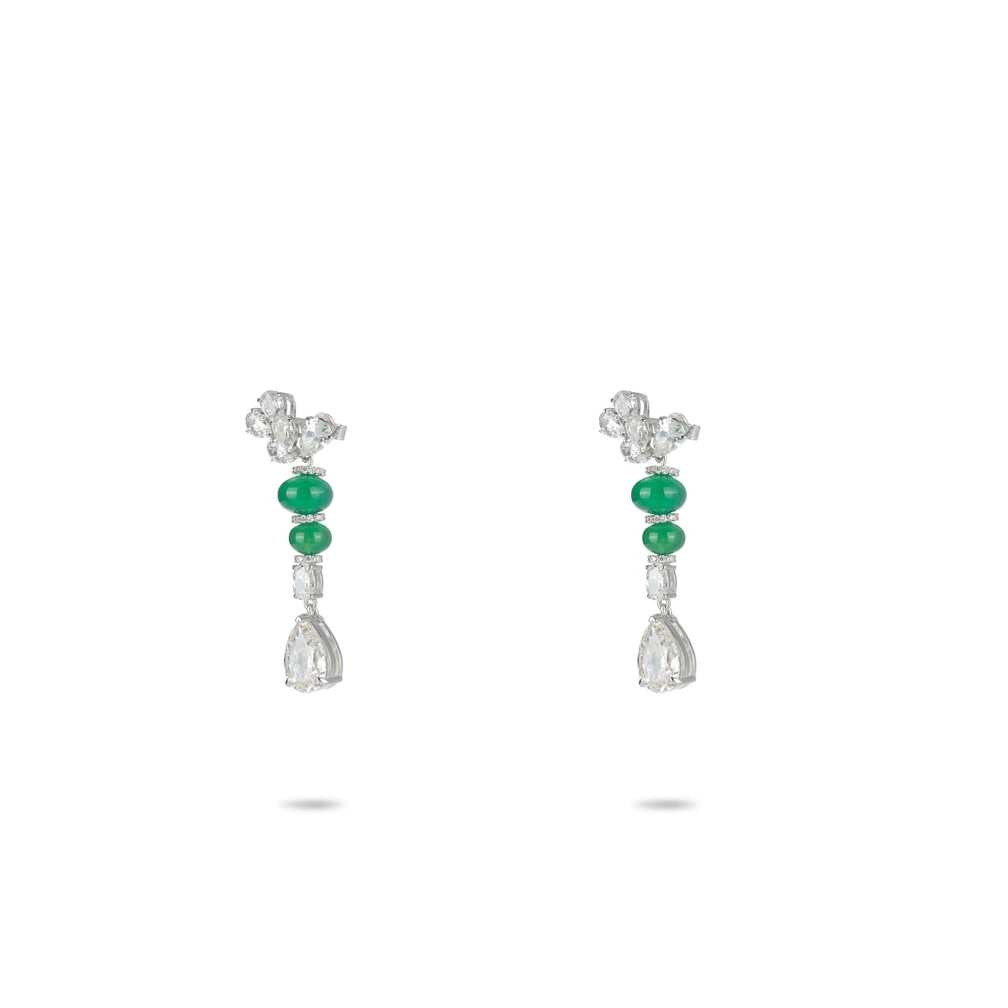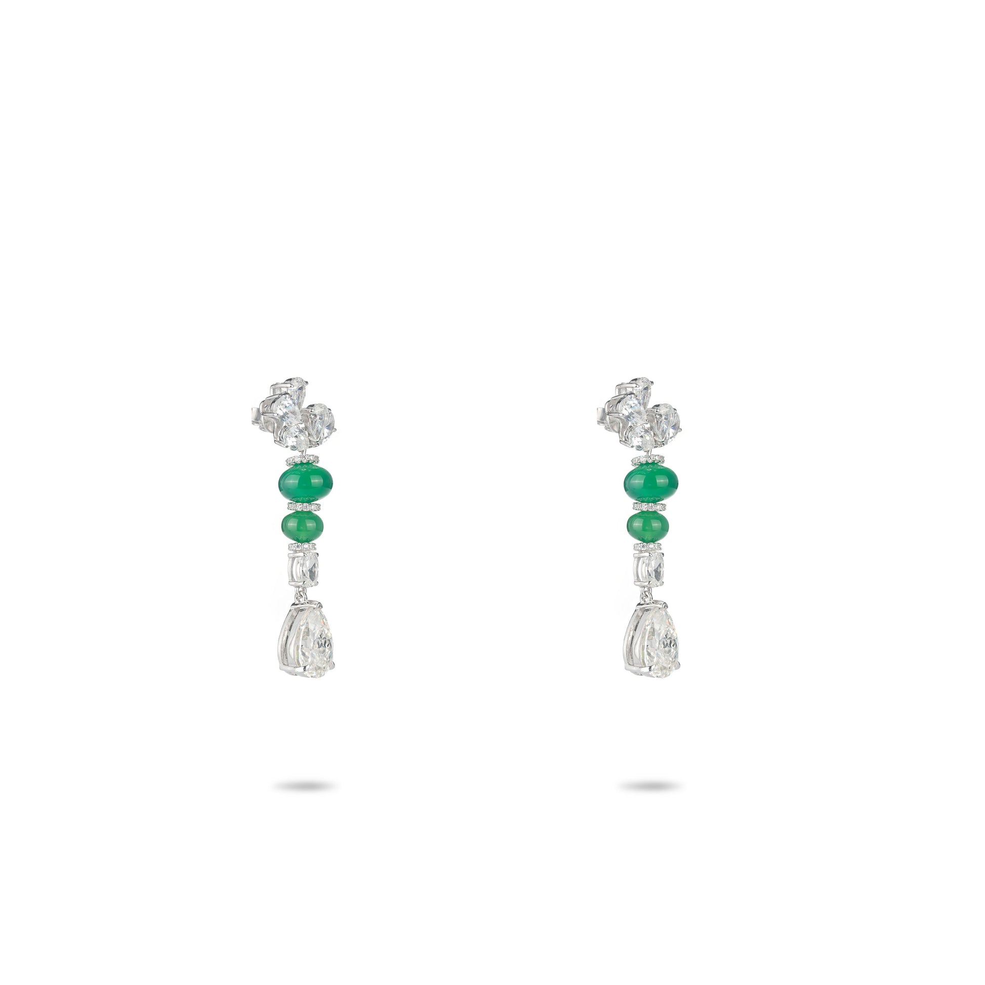 Crafted with Lab created stones in teardrops icy-cut and Green chalcedony beads.