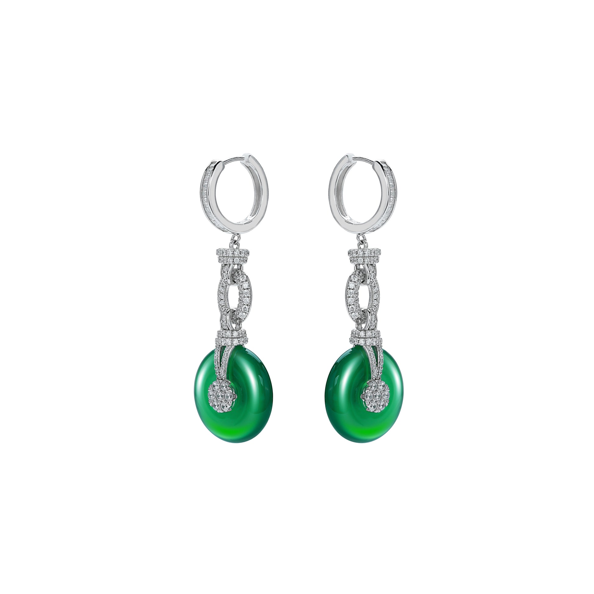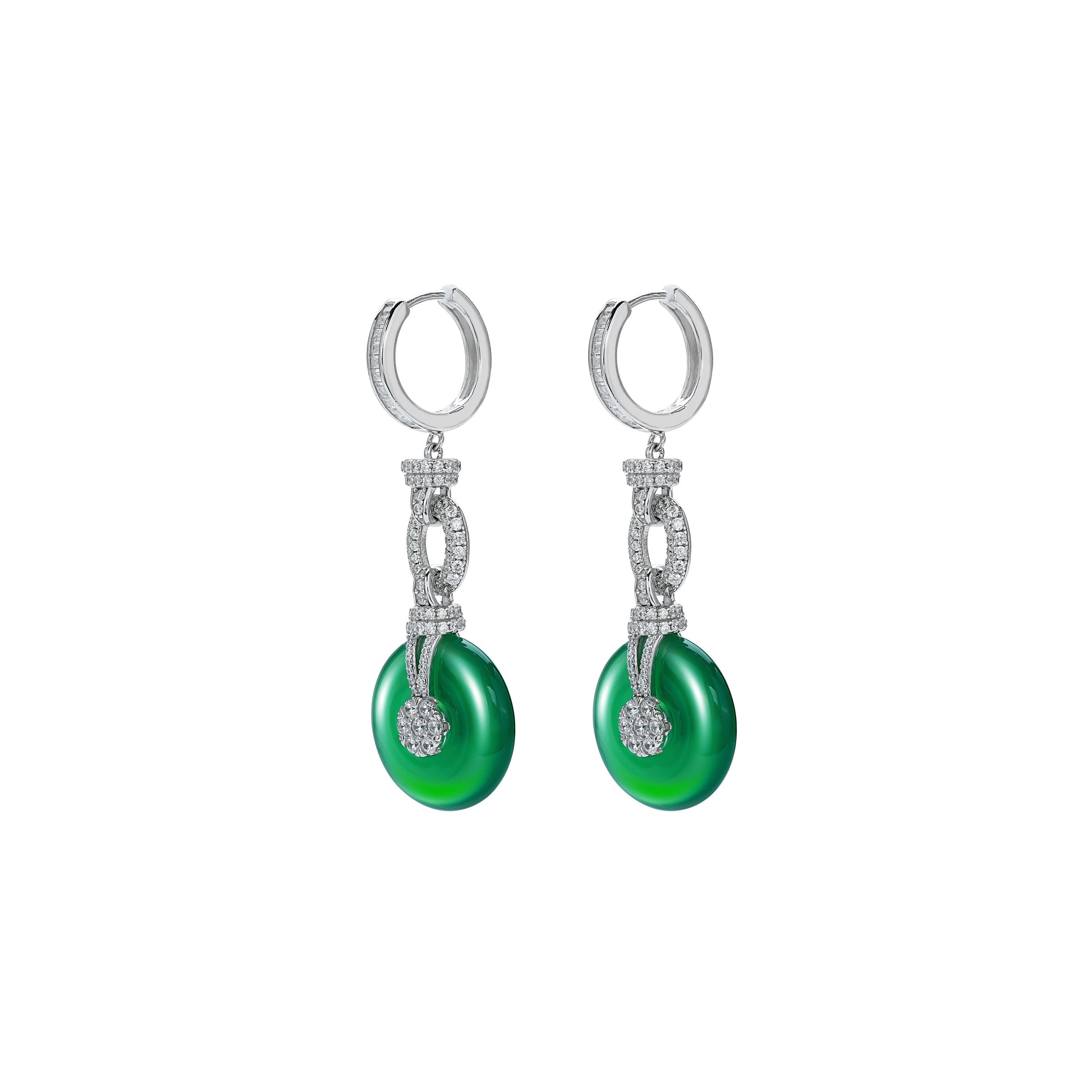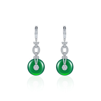 Green jadeite/chalcedony Guanyin-Inlaid Safety Buckle "Ping An Kou" Earrings