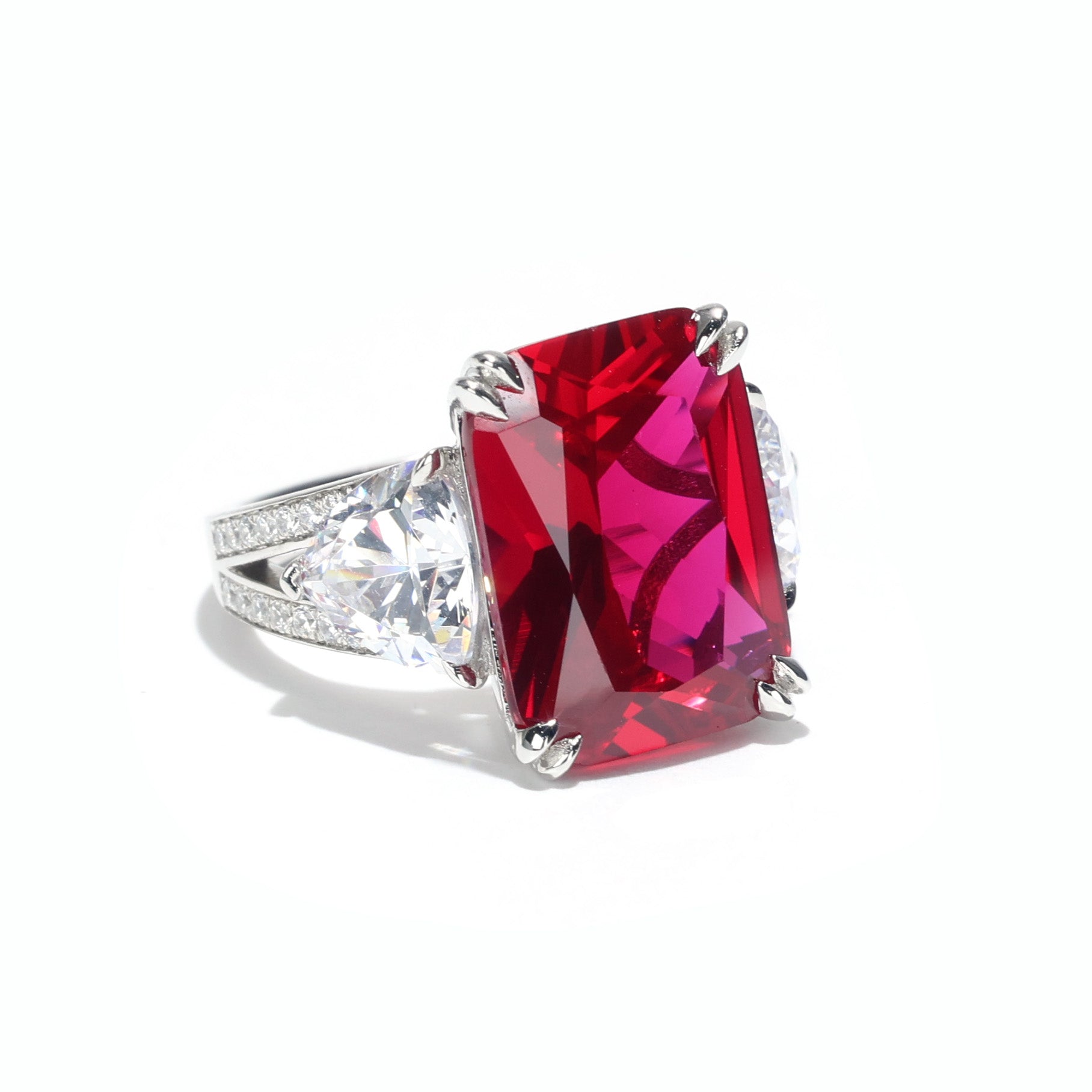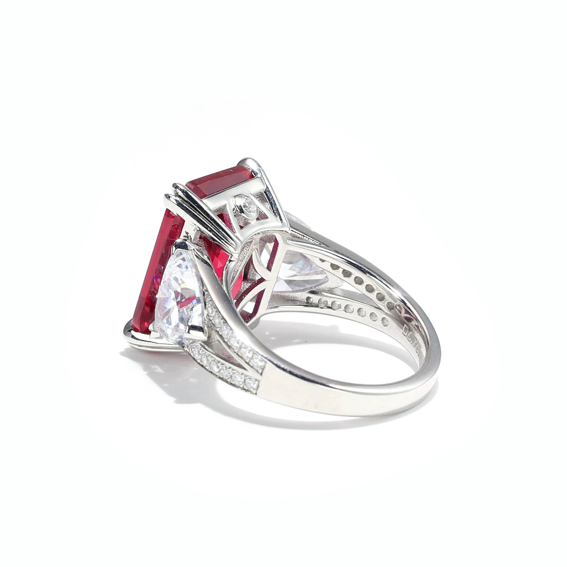 Limited edition Only 1 piece Micro-setting Ruby color Lab created stones 3 stones ring, sterling silver