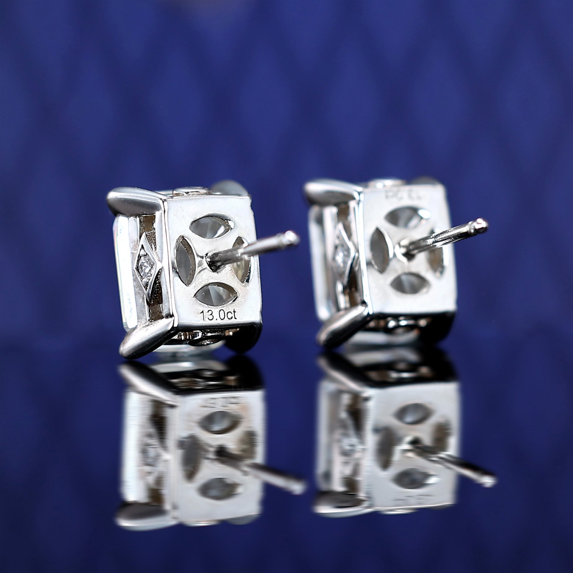 Micro-setting emerald-cut Lab created stones ear studs, sterling silver. (13 carat in total).