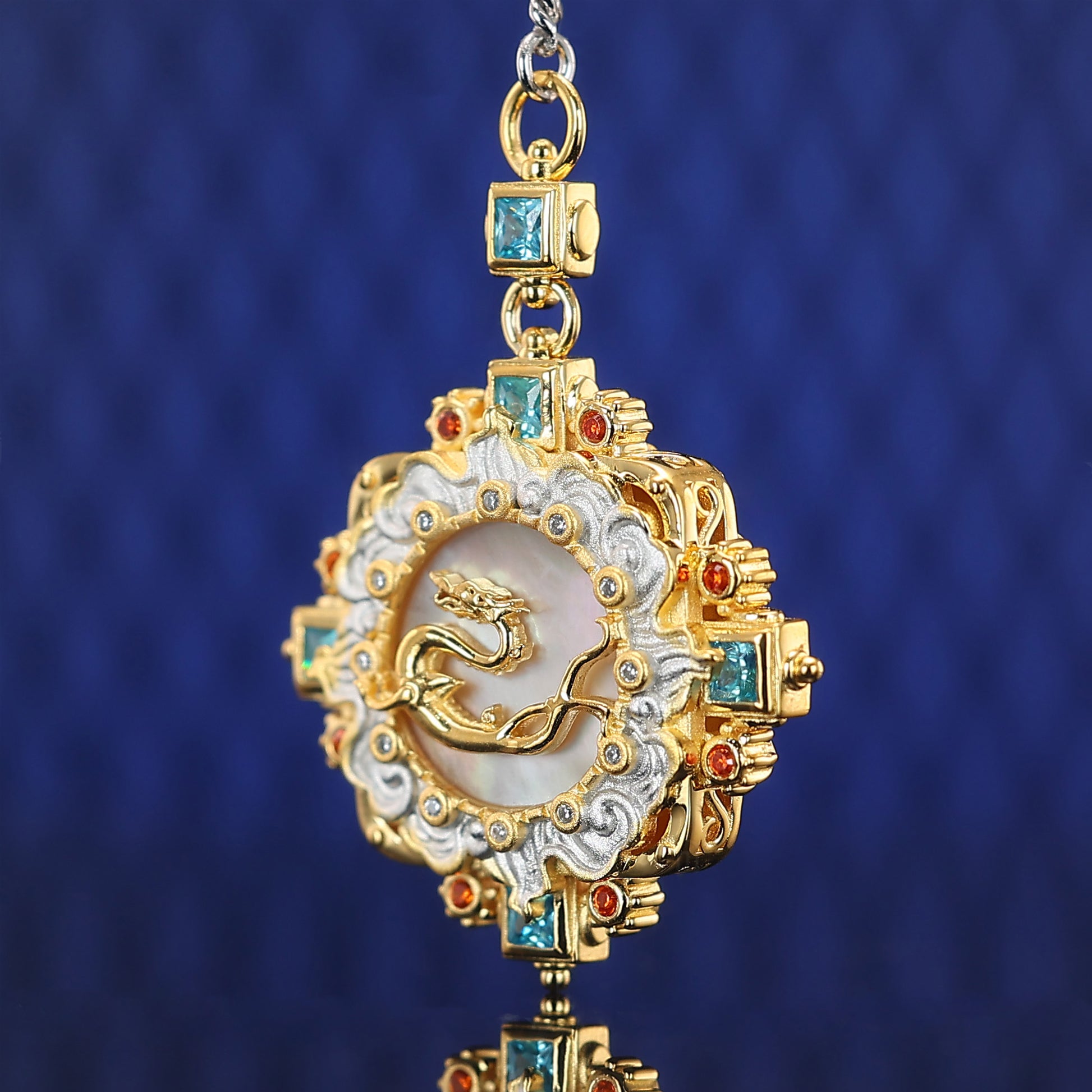 Micro-setting fancy Lab created stones dragon in the sky pendant, sterling silver.