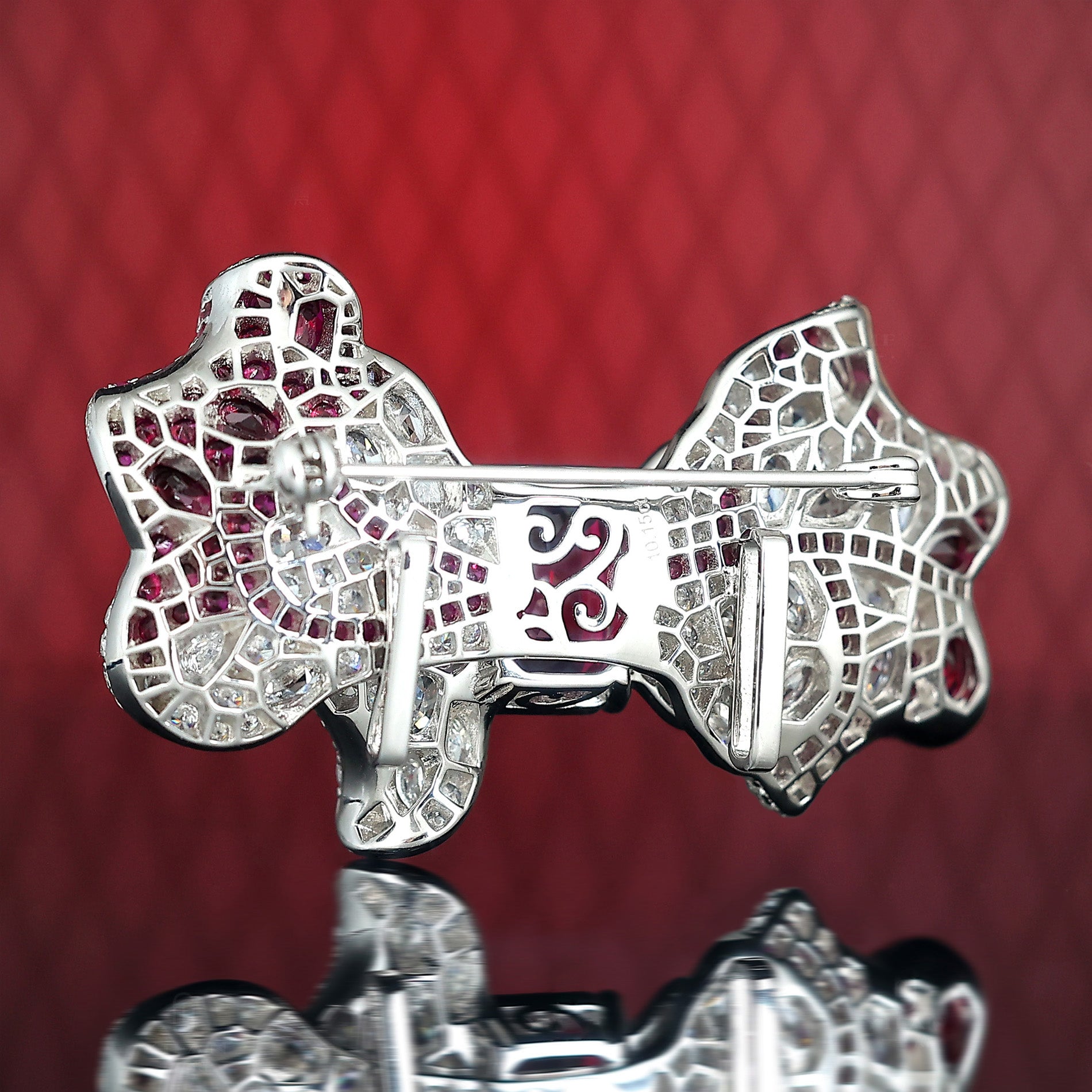 Micro-setting Fancy Ruby color Lab created stones bowknot brooch, sterling silver