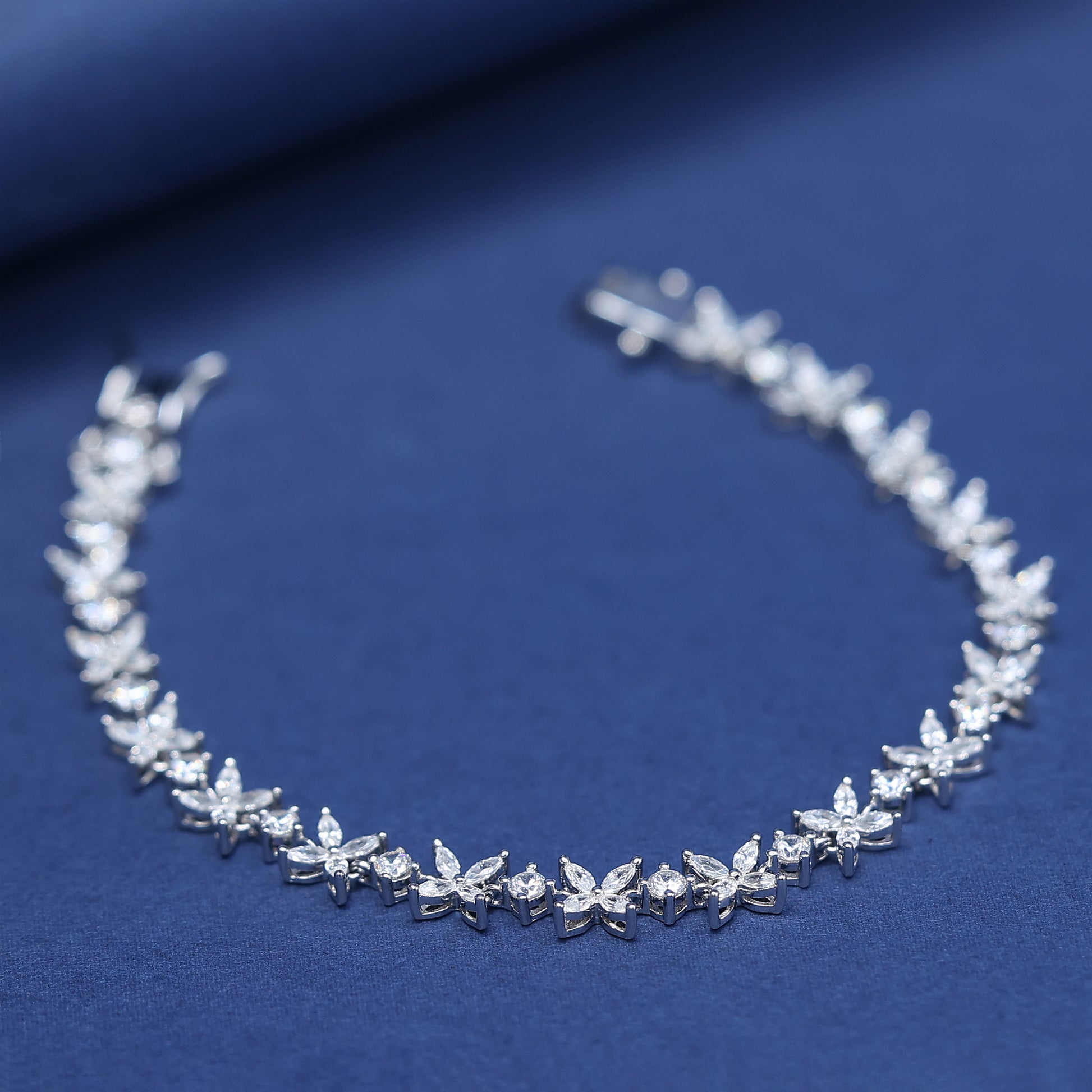 Micro-setting Lab created stones Four-petal floral bracelet, sterling silver