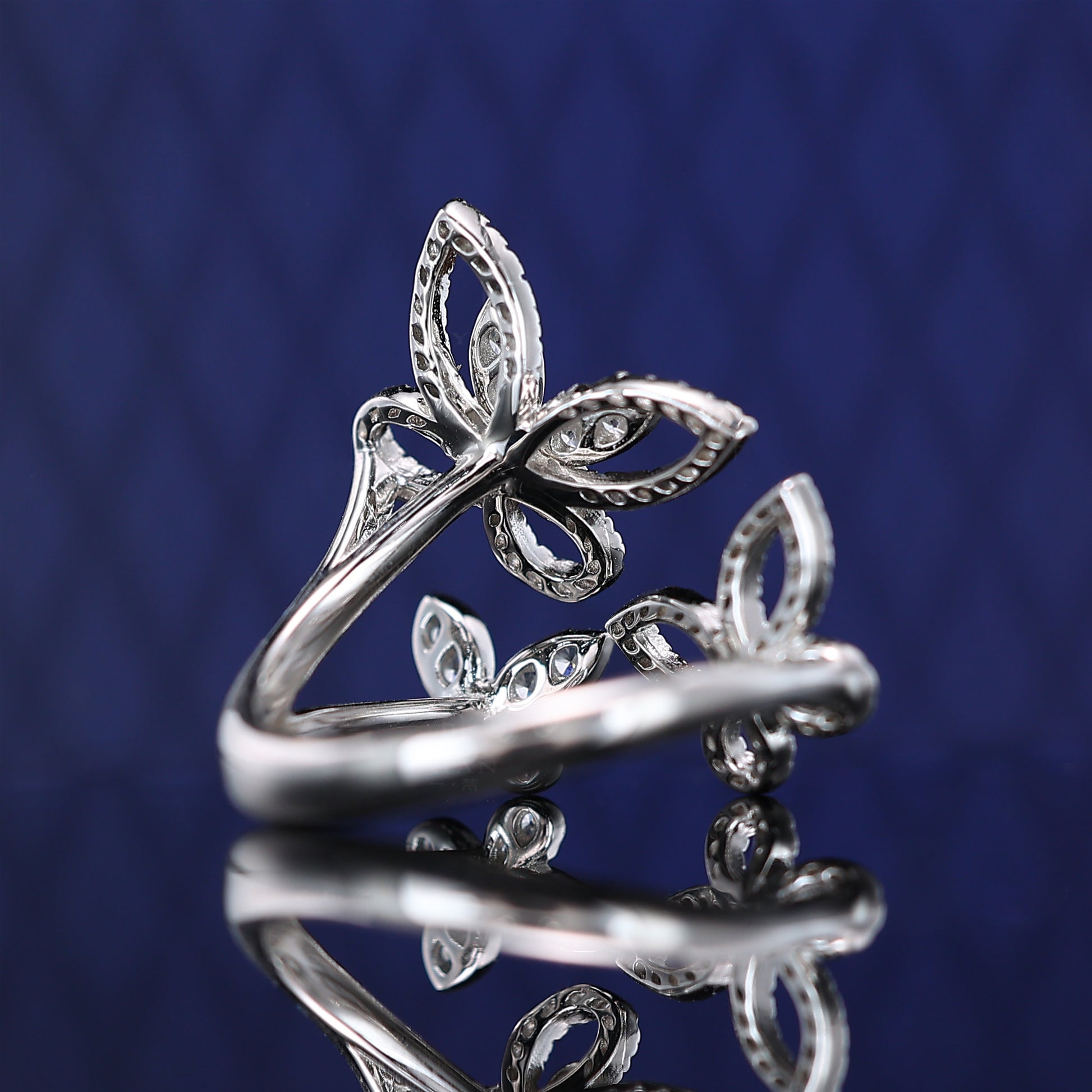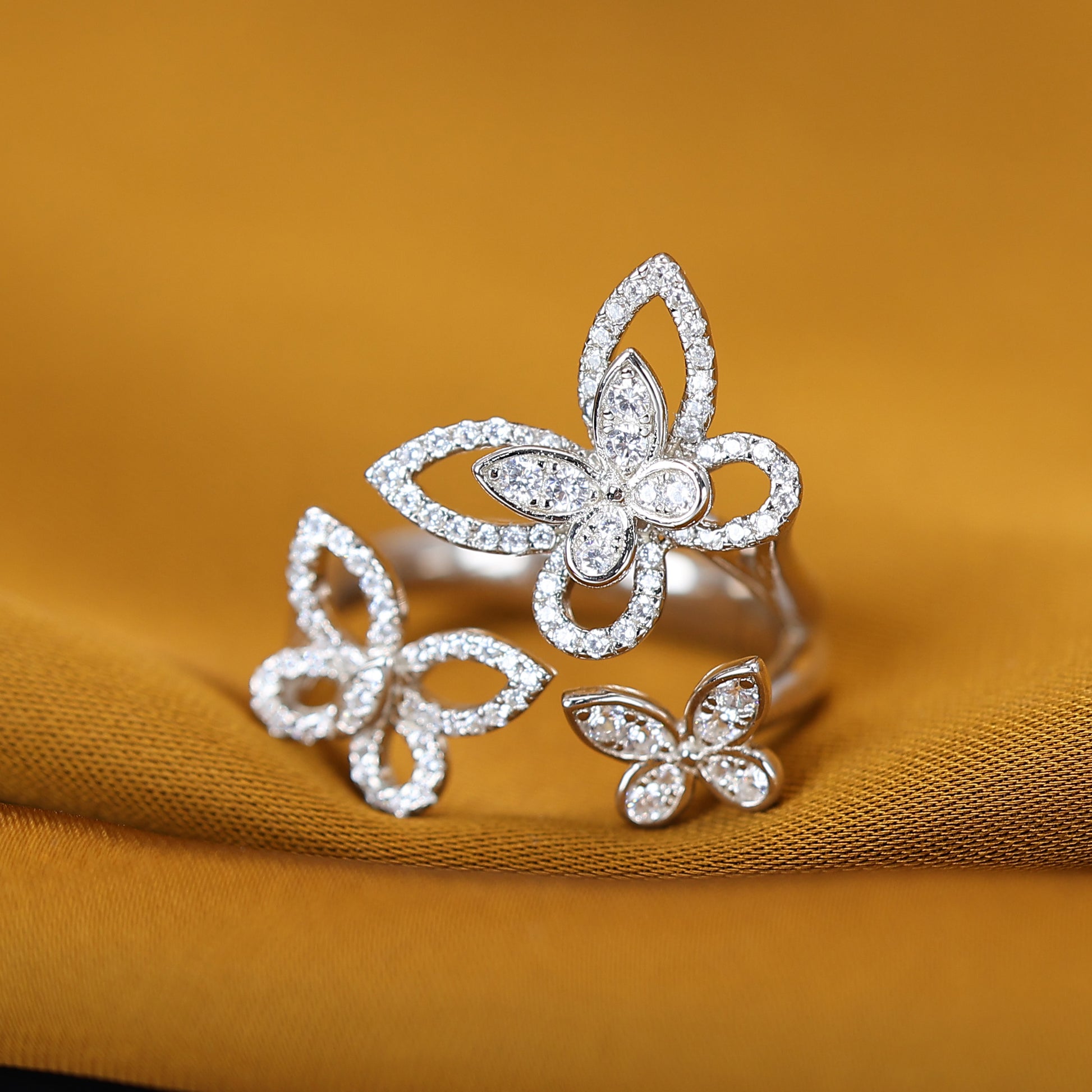 Micro-setting Lab created stones Three butterflies hollowed-out ring, sterling silver.