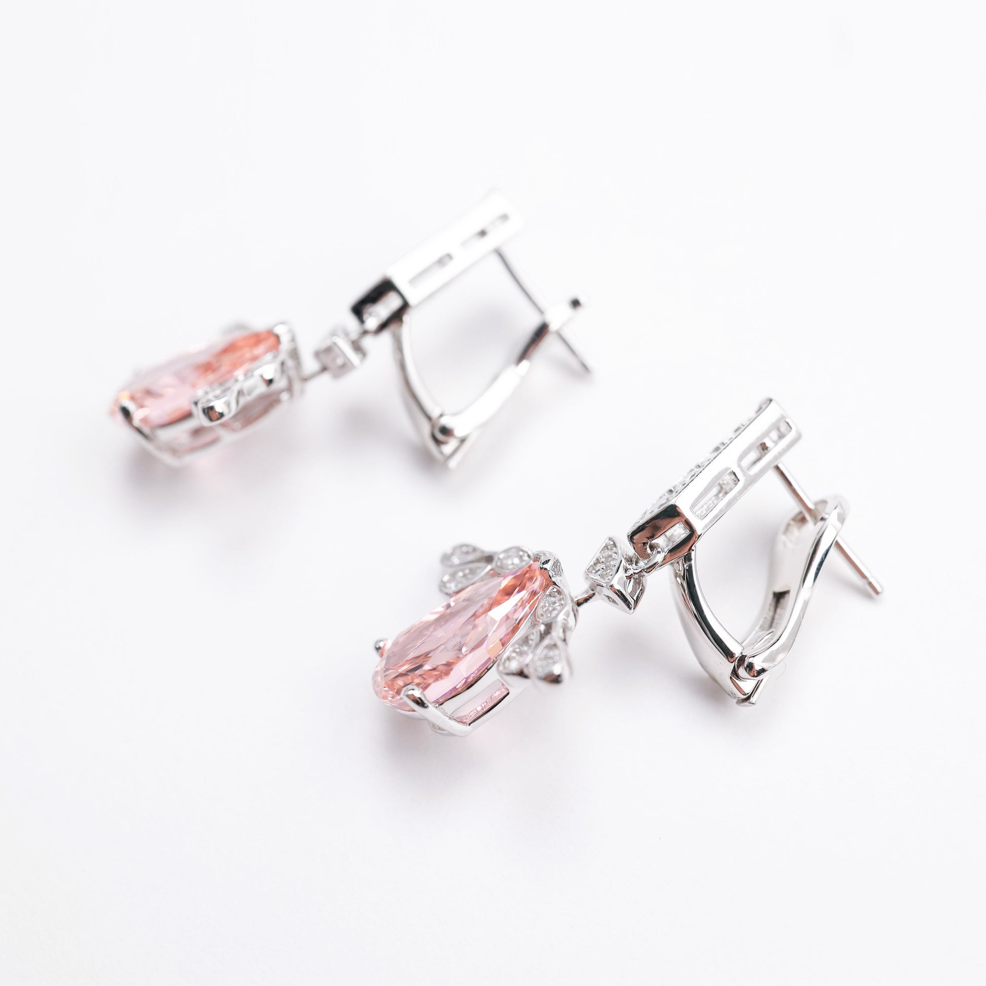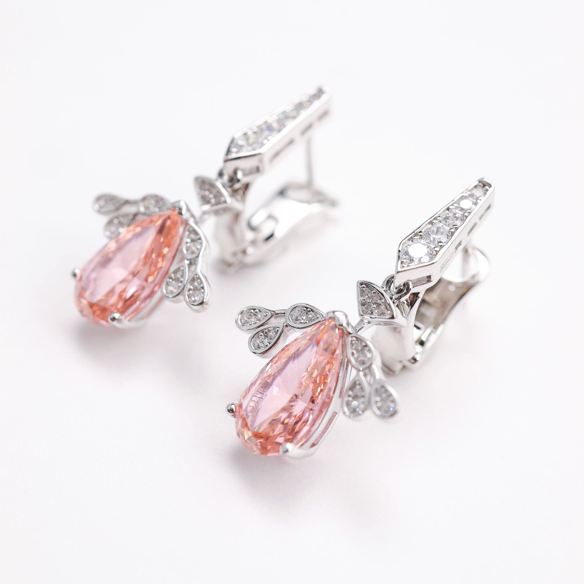 Micro-setting Morganite color Lab created stones Angel's Wings earrings. sterling silver.