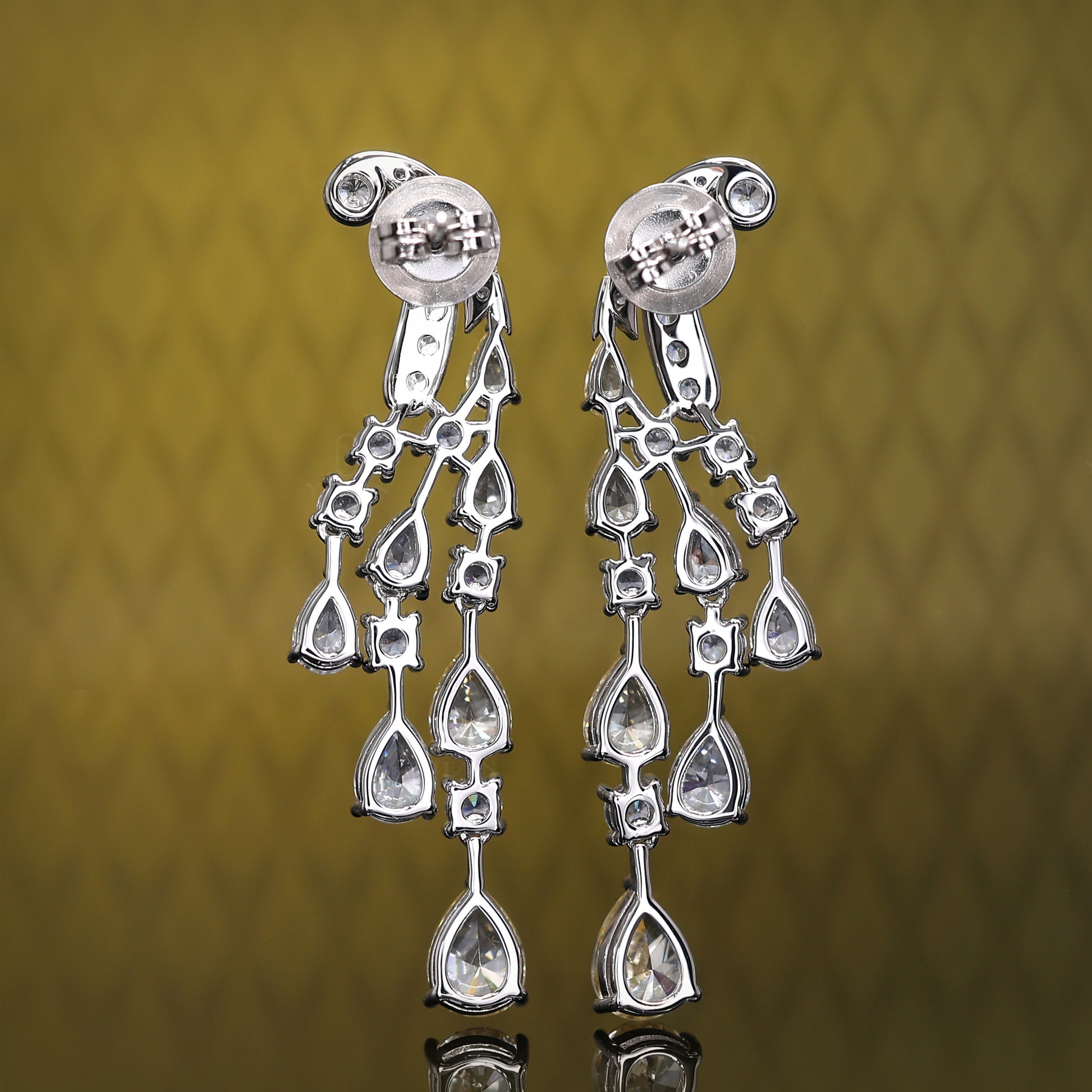 Micro-setting Yellow and white diamonds color Lab created stones teardrop earrings, sterling silver.