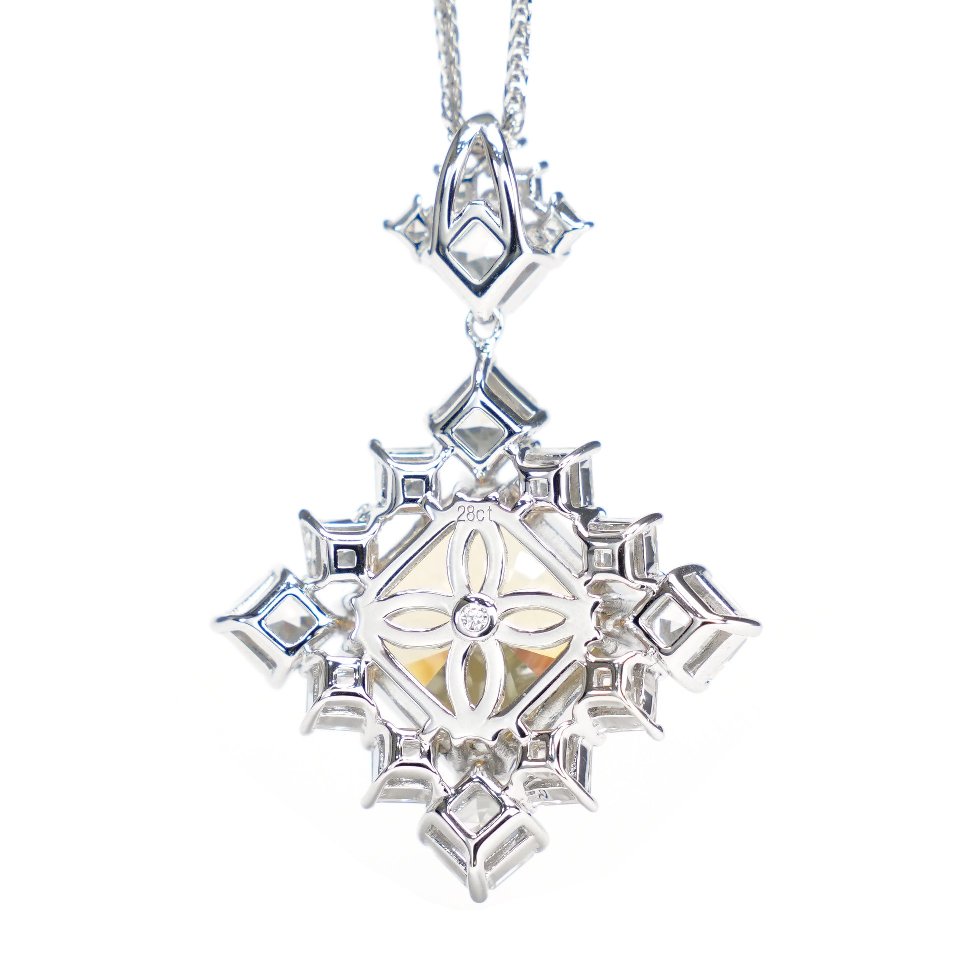 Micro-setting fancy yellow diamond color Lab created stones Shining stars necklace, sterling silver.