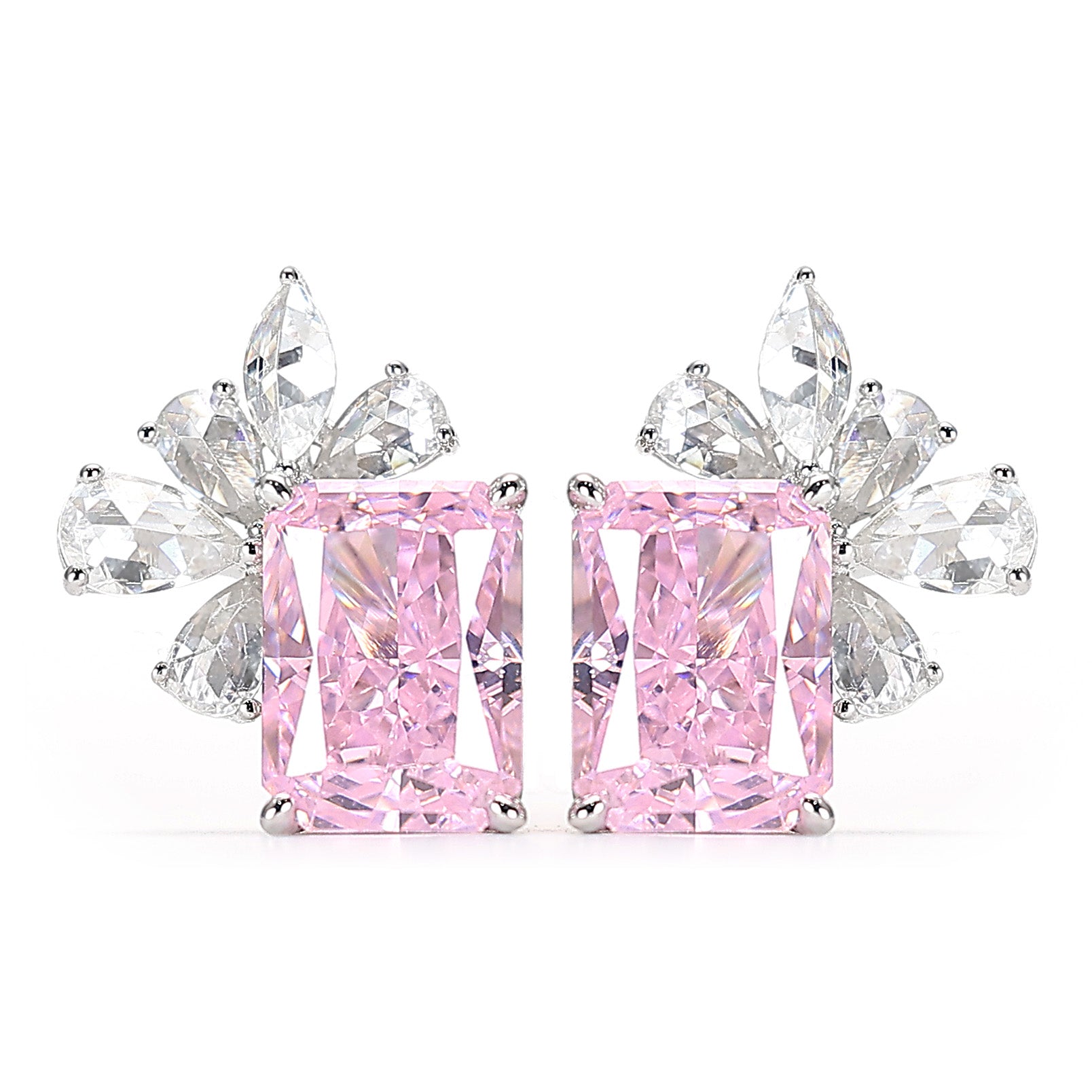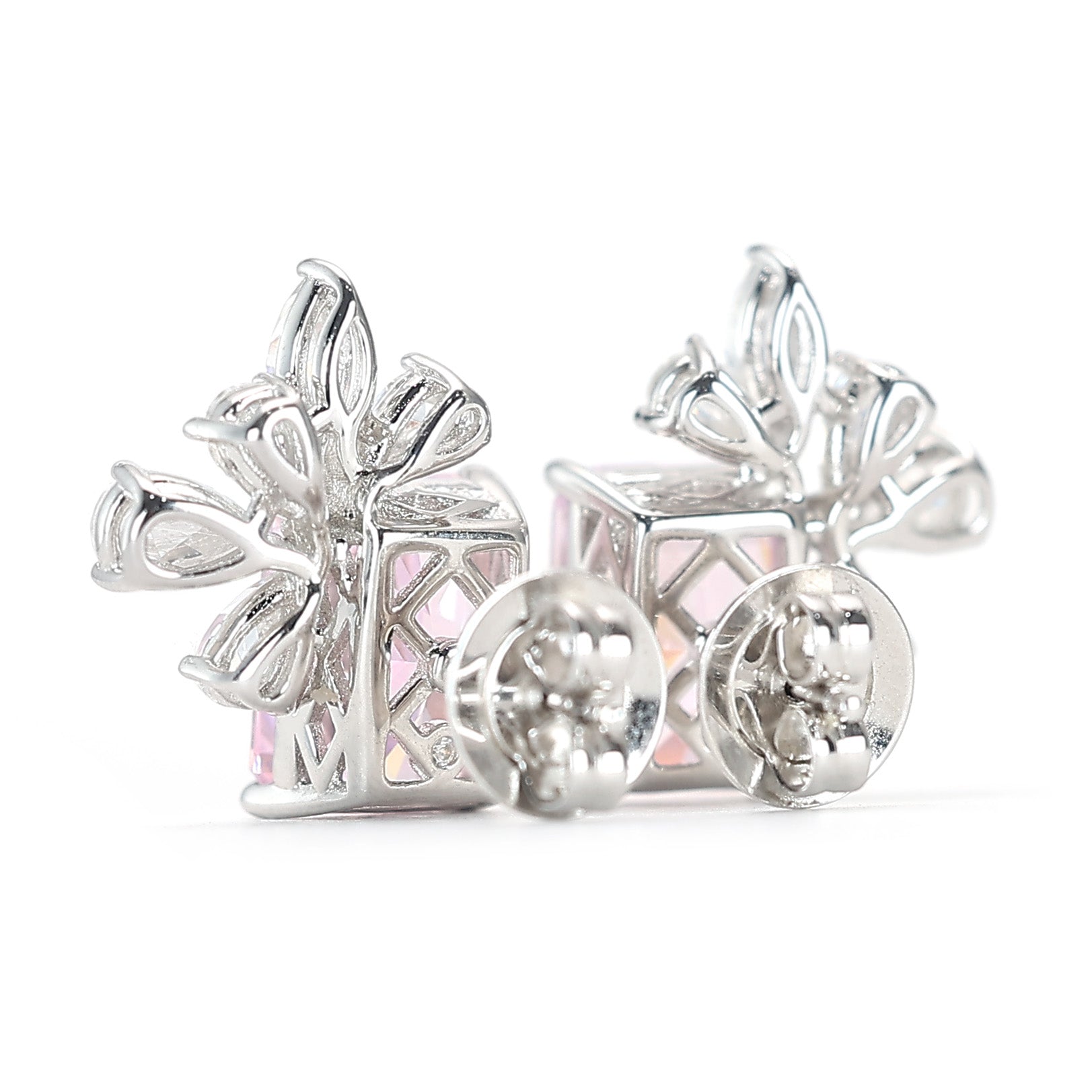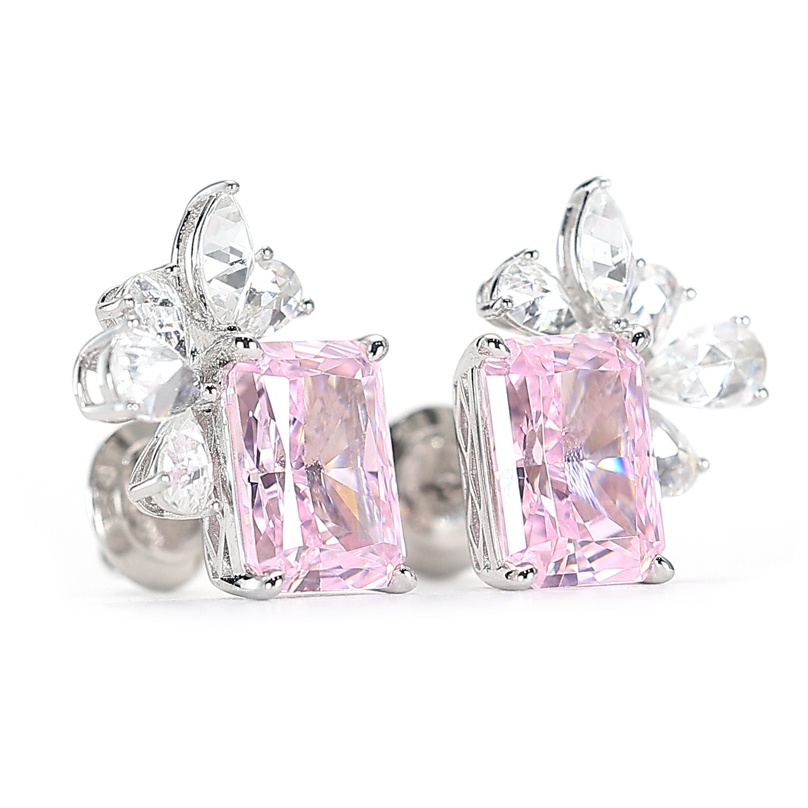 Micro-setting Sakura pink diamond color lab created stones romantic ear studs, sterling silver。