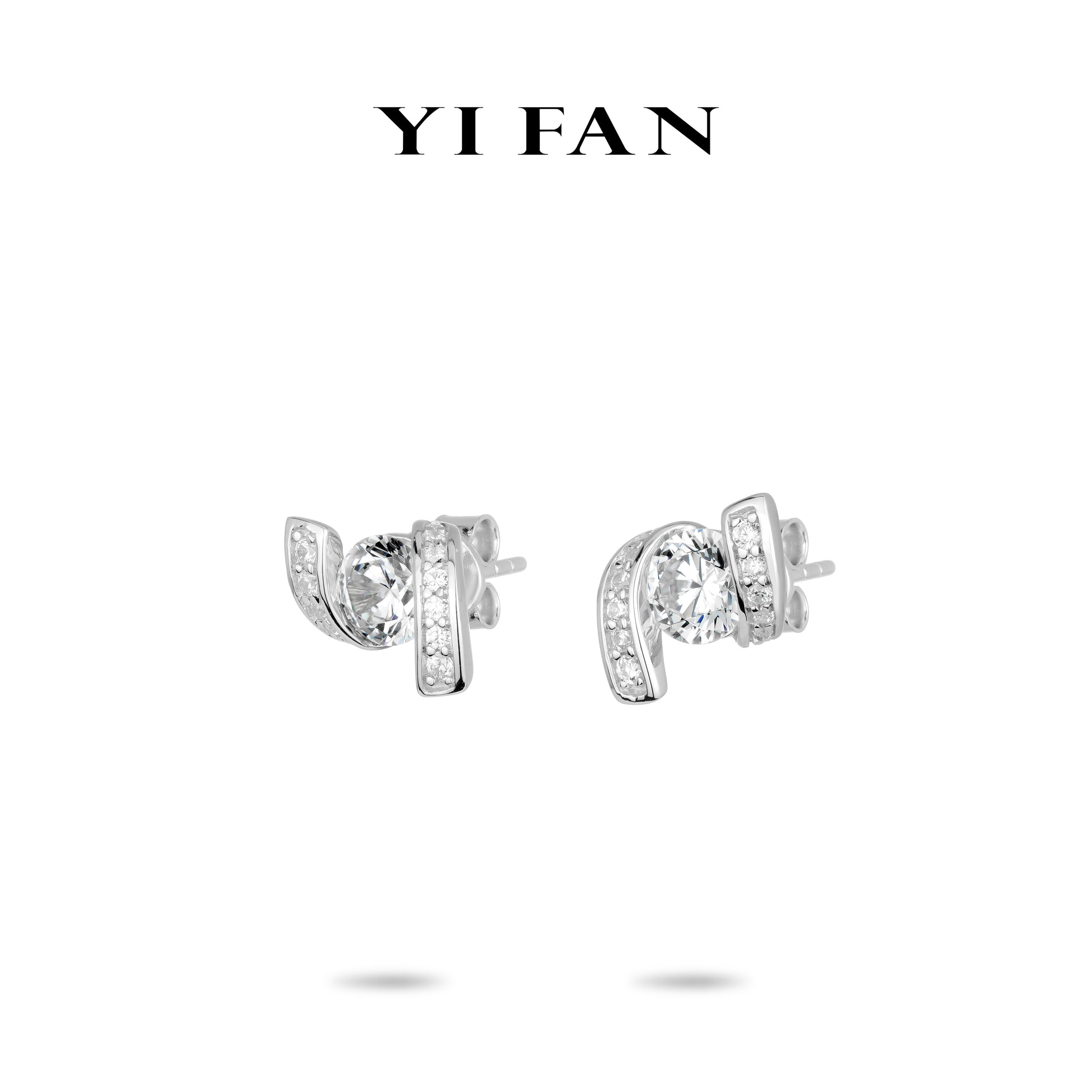 Modern "Brilliant Floating Diamond Spiral" delicate Ear Studs.