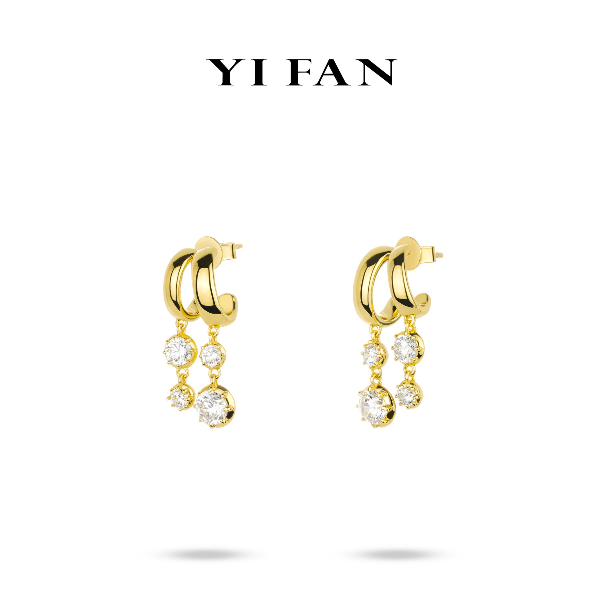 Pure Radiance Collection: Modern "Brilliant Golden Waterfall" exquisite Earrings
