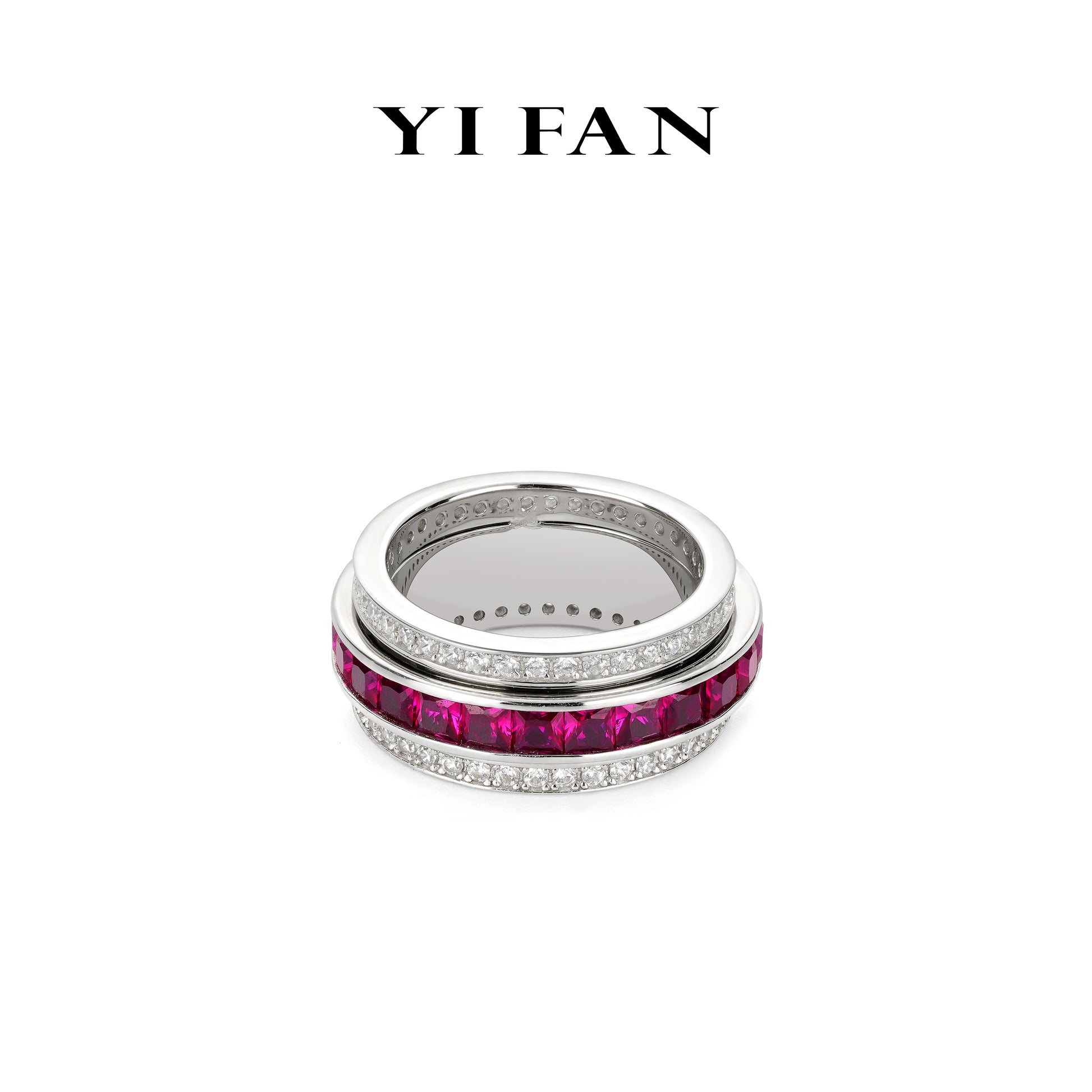 Ruby color collection: Modern "Red & White Borderless Mosaic" Fidget Spinner Ring