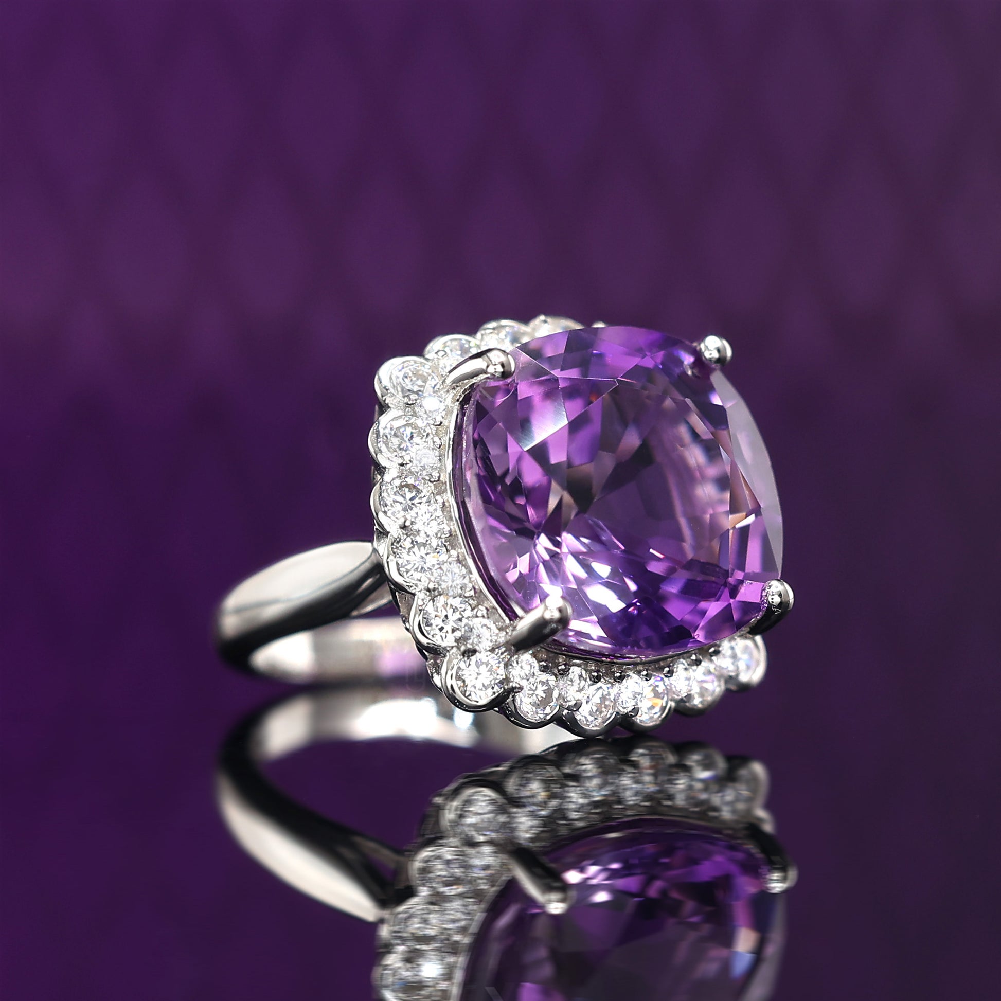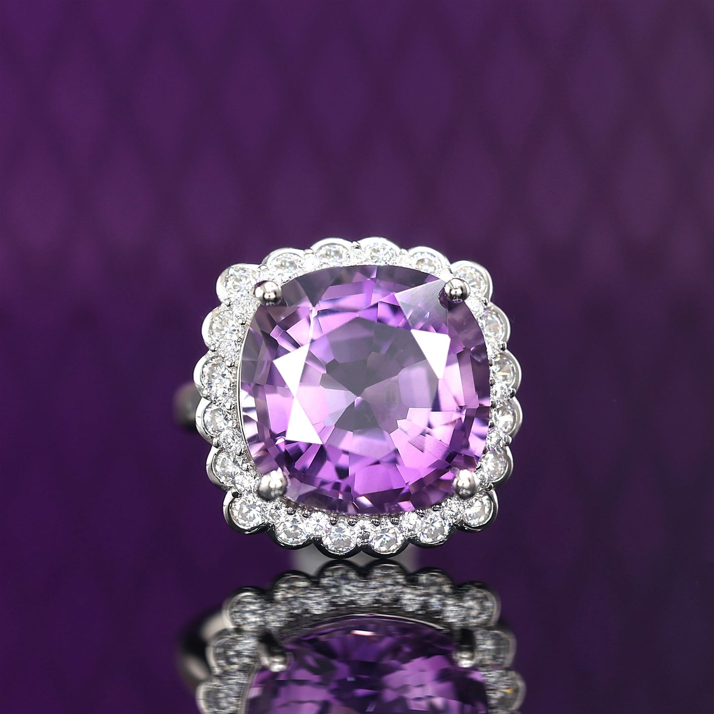 Special offer Micro-setting Purple diamond color Lab created stones cocktail ring, sterling silver。