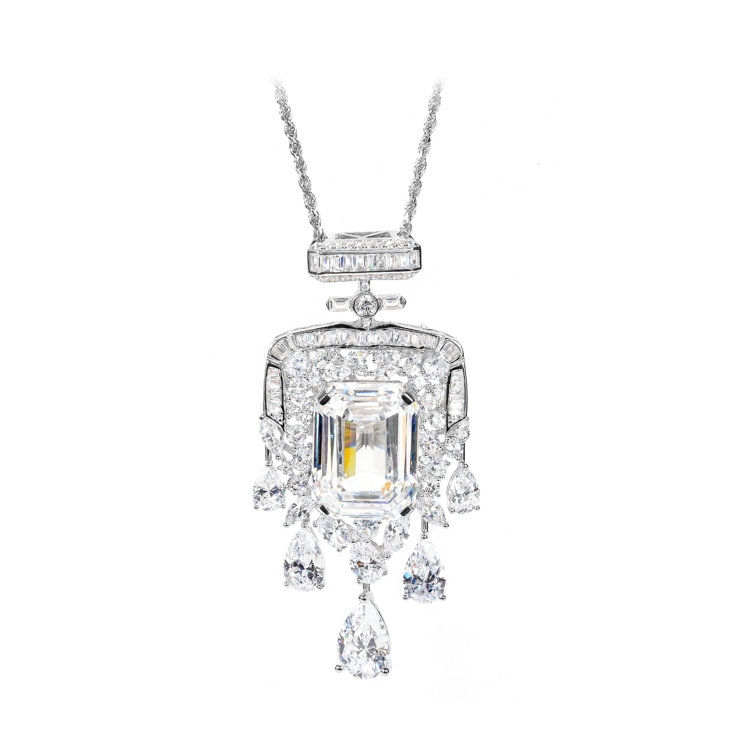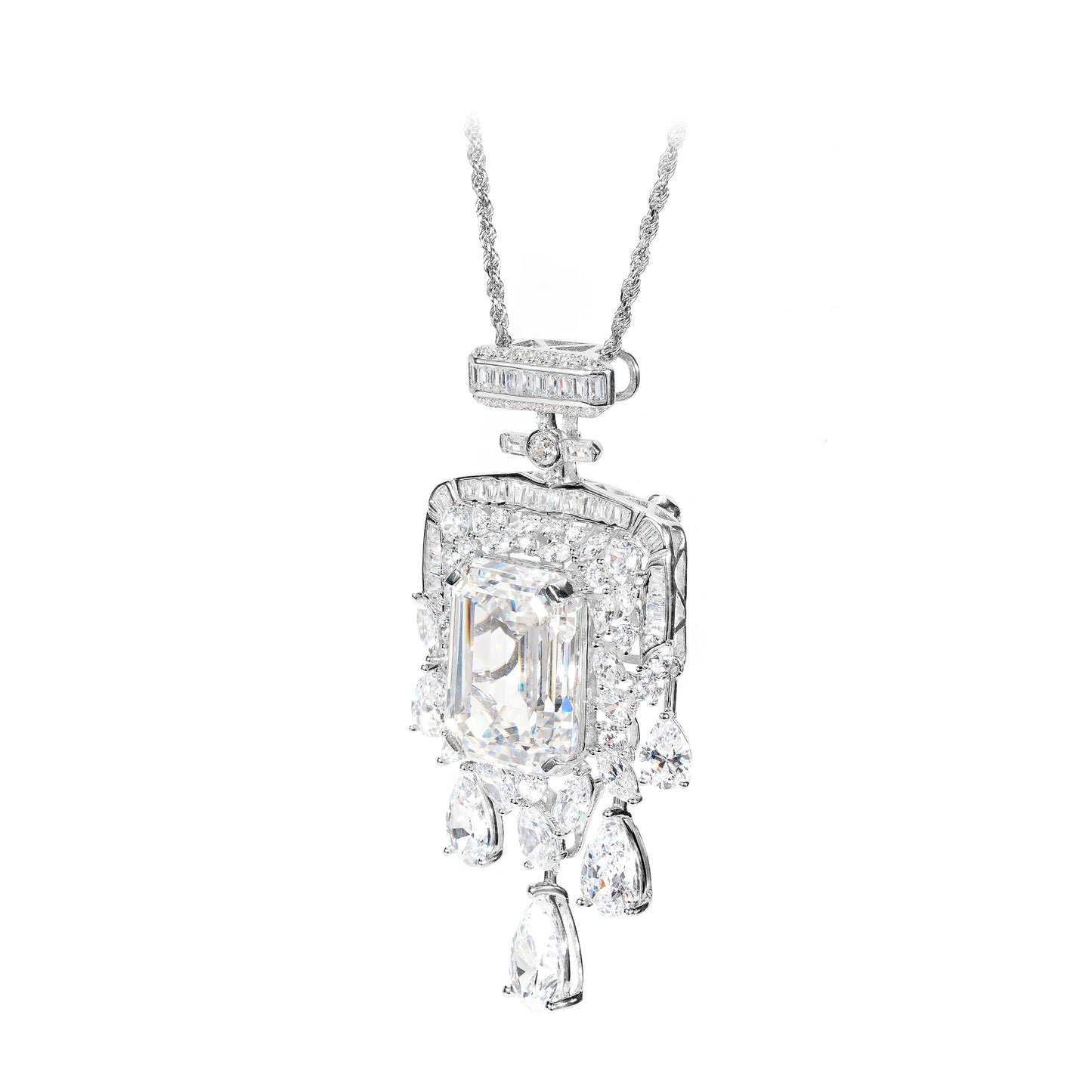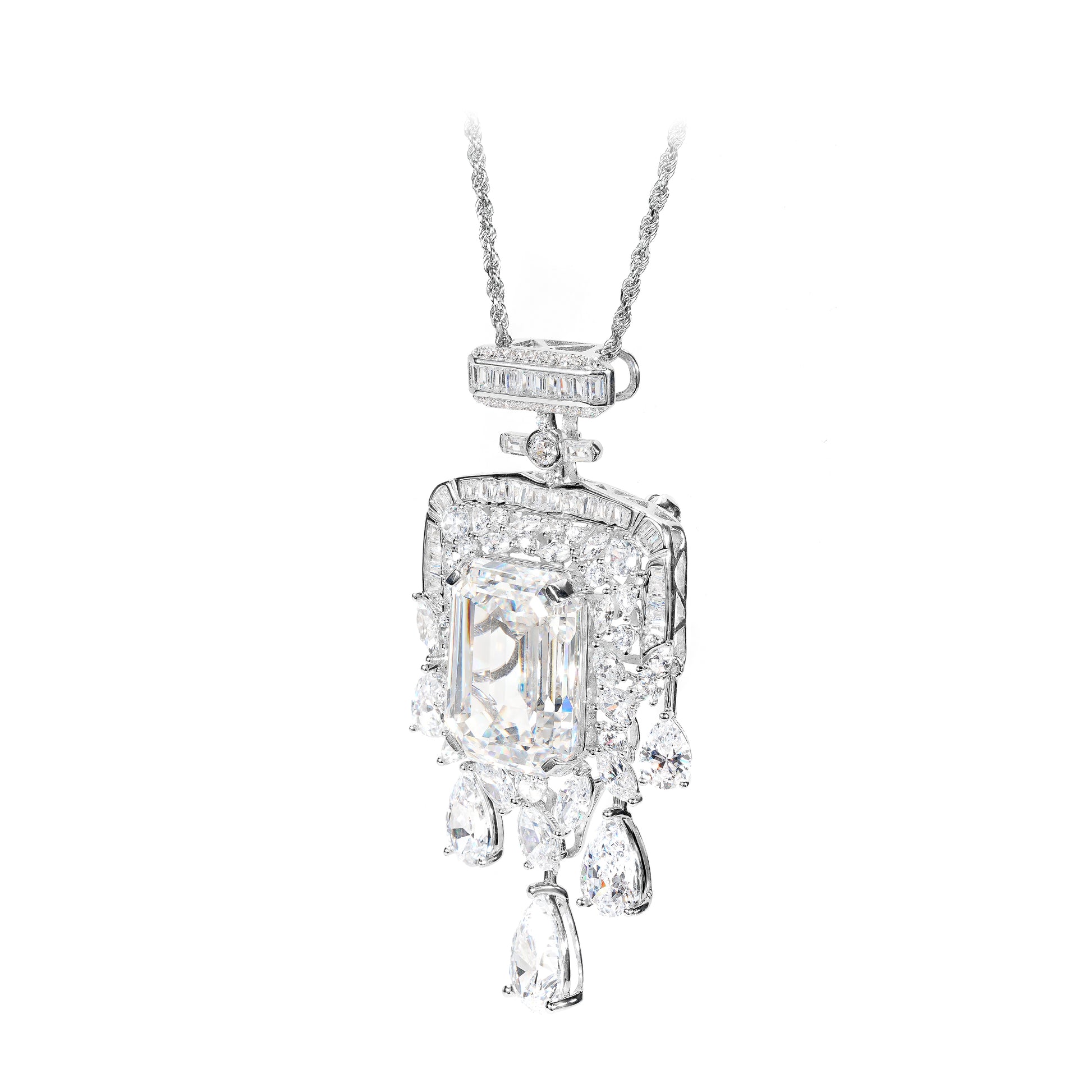 Micro-setting clear diamond color Lab created stones Luxury "New white Perfume Bottle" Pendant, sterling silver.