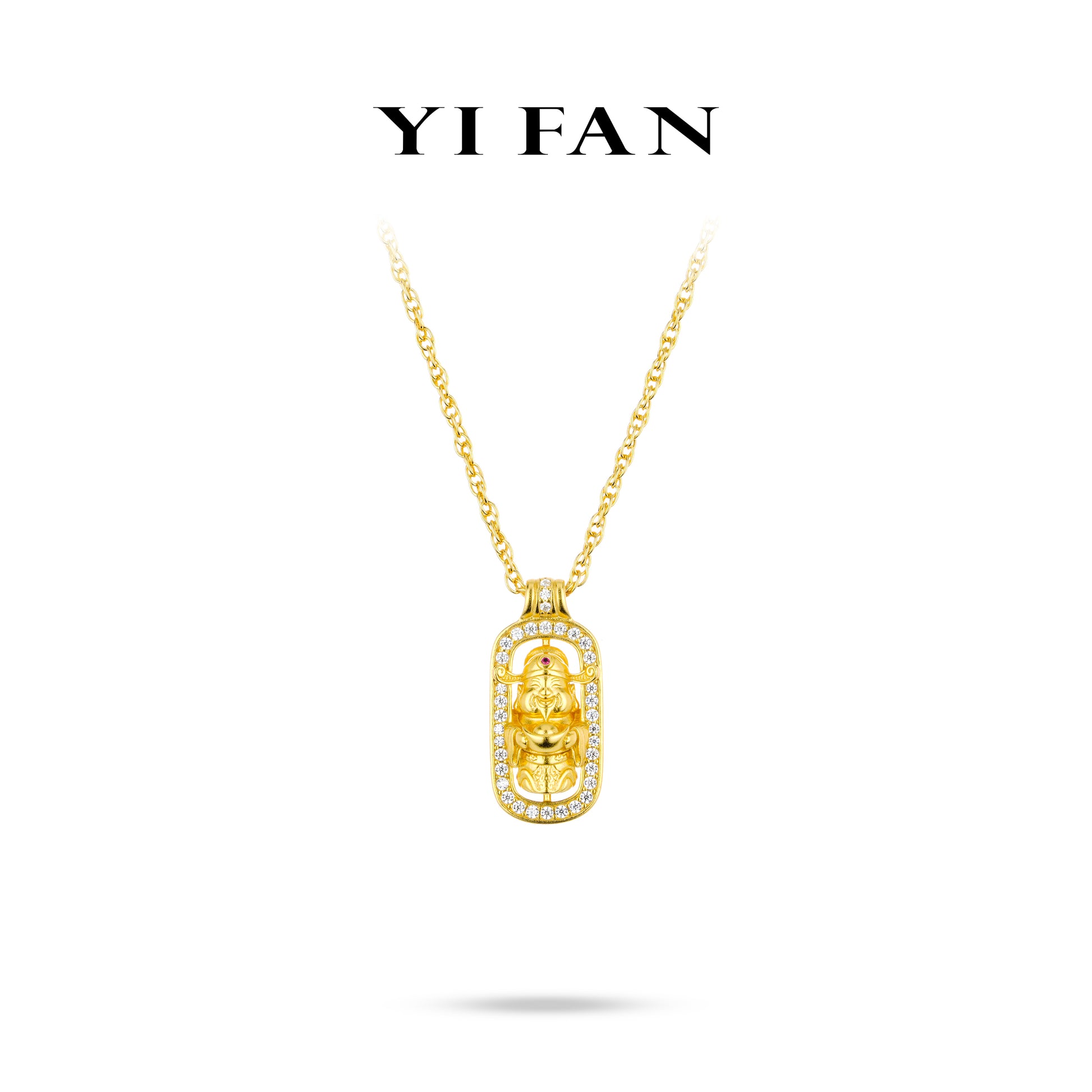 This necklace is crafted with 925 silver, luxuriously plated in 18K Yellow gold, exuding an air of opulence and reverence. The pendant features an intricately designed deity figure, surrounded by a halo of meticulously set synthetic diamonds, which not only enhance its brilliance but also symbolize divine radiance. The delicate gold chain complements the pendant perfectly, ensuring a comfortable and elegant fit. Rooted in spiritual symbolism, this necklace is believed to bring protection and blessings to the wearer. Whether worn as a daily reminder of faith or for special occasions, it is a testament to Elsevier Jewelry & YIFAN’s craftsmanship and attention to detail. Ideal for those who seek a blend of spiritual significance and high - end jewelry design.