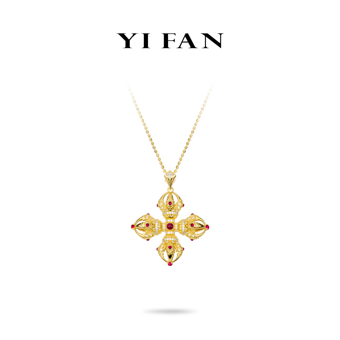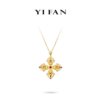 Golden time collection: "Cross-shaped Vajrayana Pestle" detailed Pendant Necklace (Unisex)