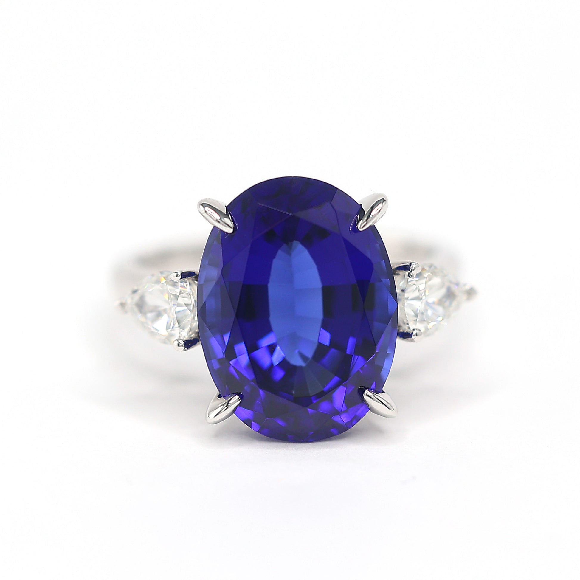 Saphirfarbener Laborring mit mikrogefassten Steinen in Form eines Taubeneis, Sterlingsilber. (10 Karat)