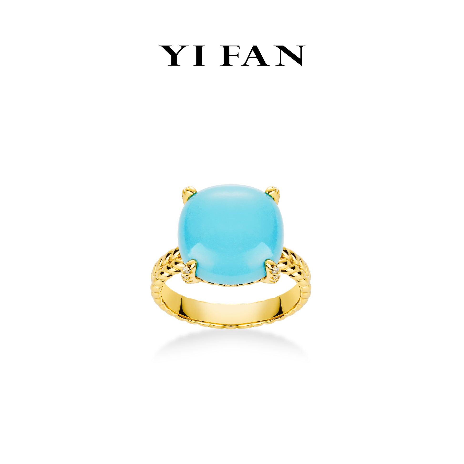 "Golden-arm Blue Cabochon turquoise" Ring (Unisex)
