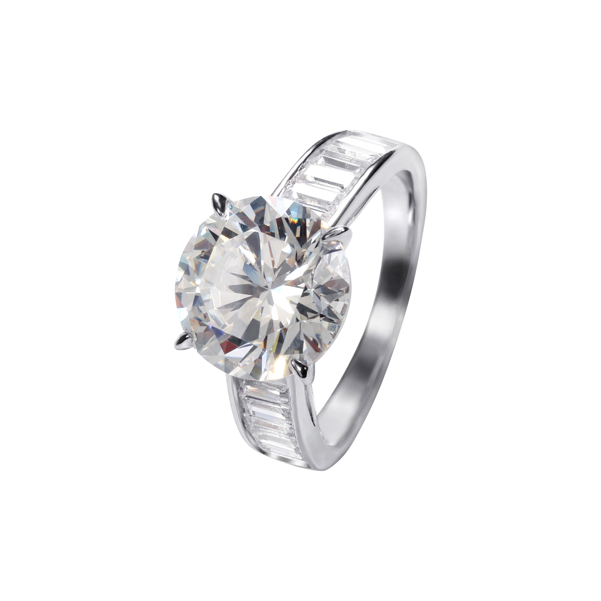 Micro-setting brilliant cut clear diamond color Lab created stones 4 prong aurora Solitaire ring, sterling silver. (6 carat)
