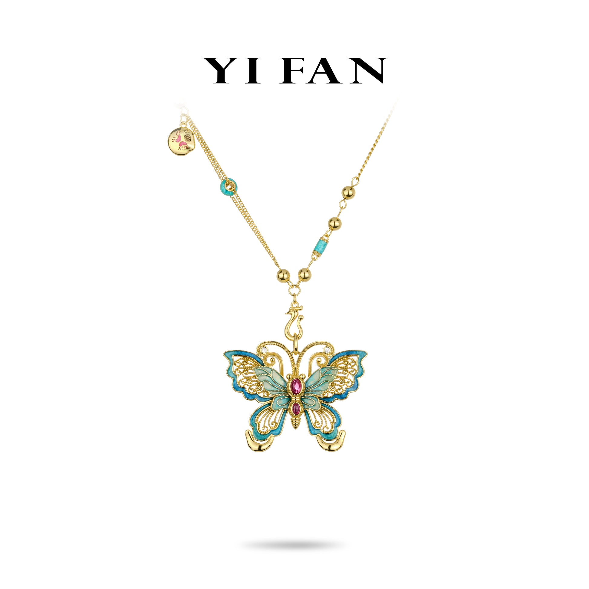 Limited Animal collection: Luxury "Vibrant Butterfly with unique Golden Chain" detailed Ming fire enamel Pendant/Necklace