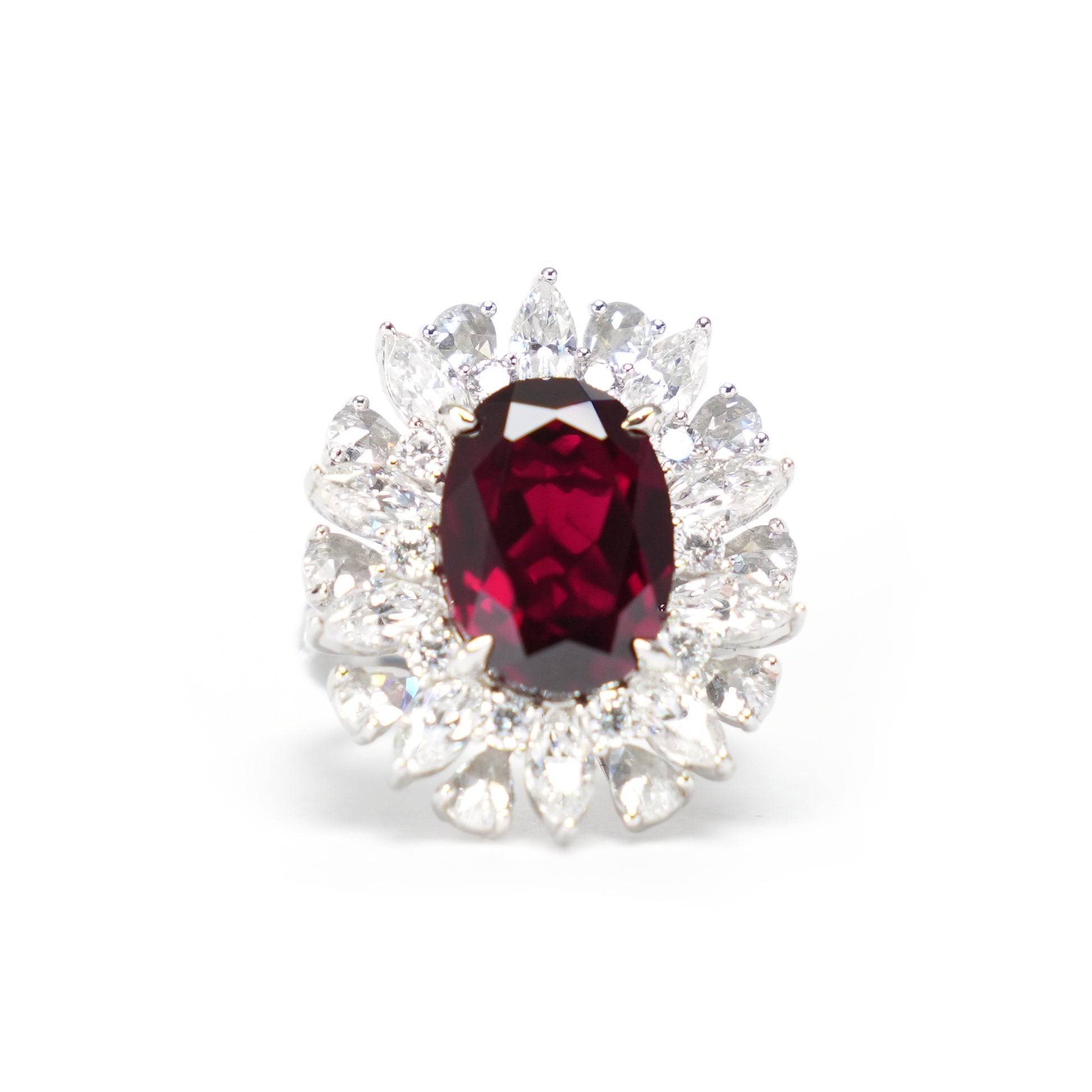 Micro-setting Oval ruby color Lab created stones Ice and snow flower ring, sterling silver(8.6 carat)