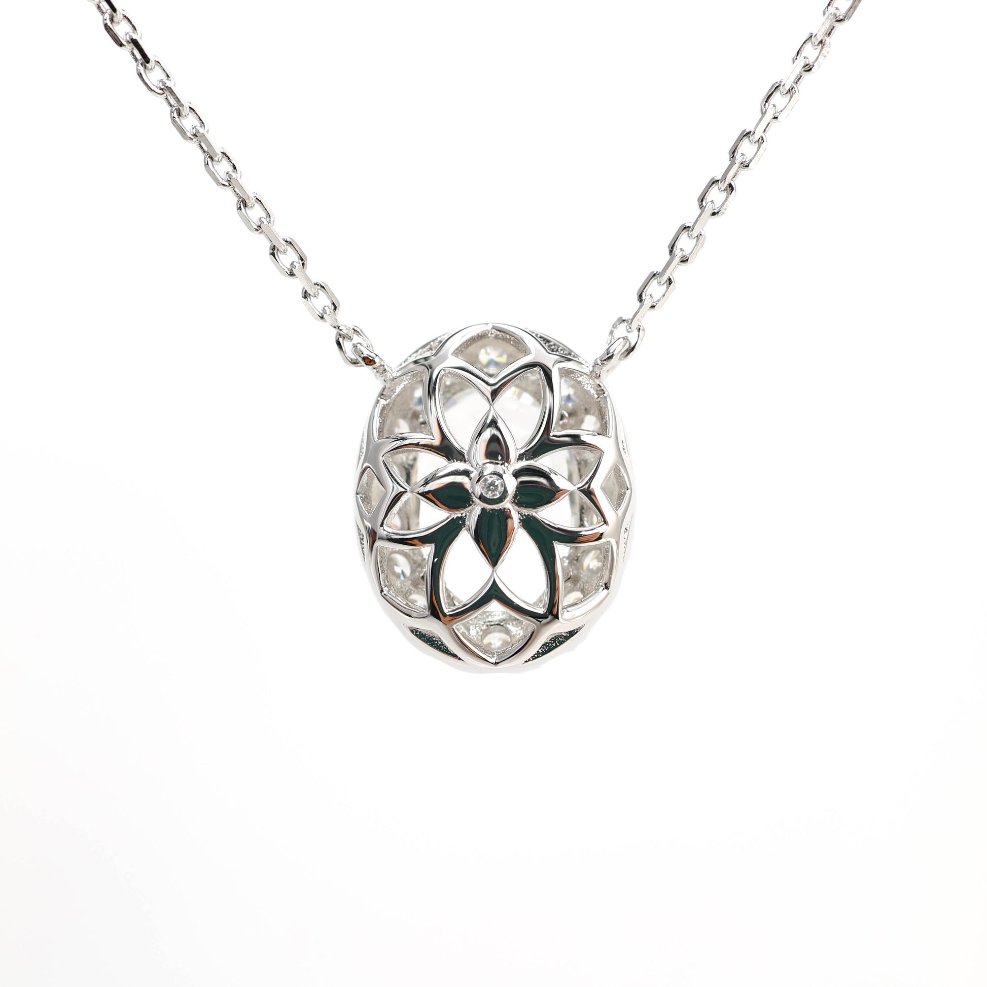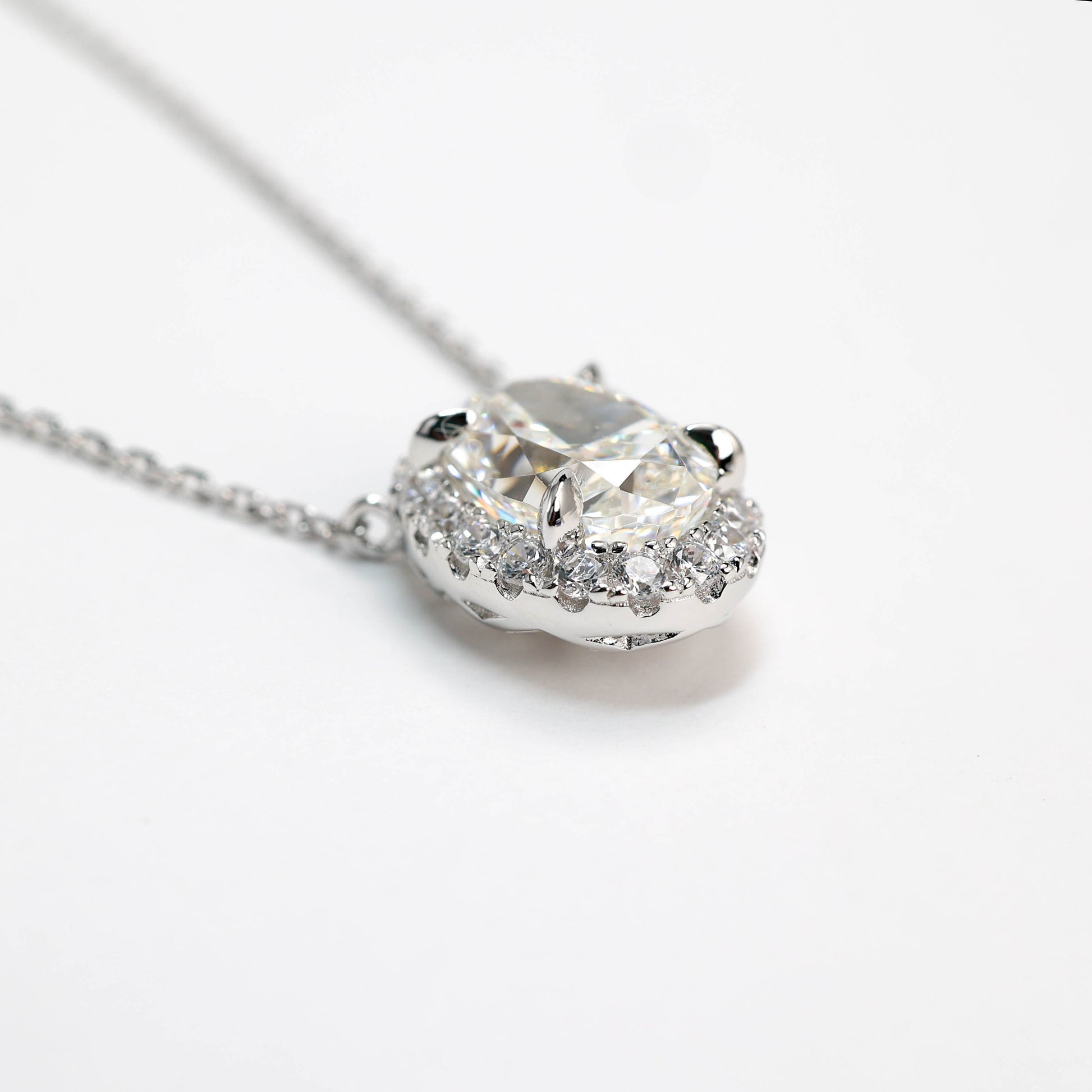 Micro-setting Pigeon egg shape G color necklace, sterling silver