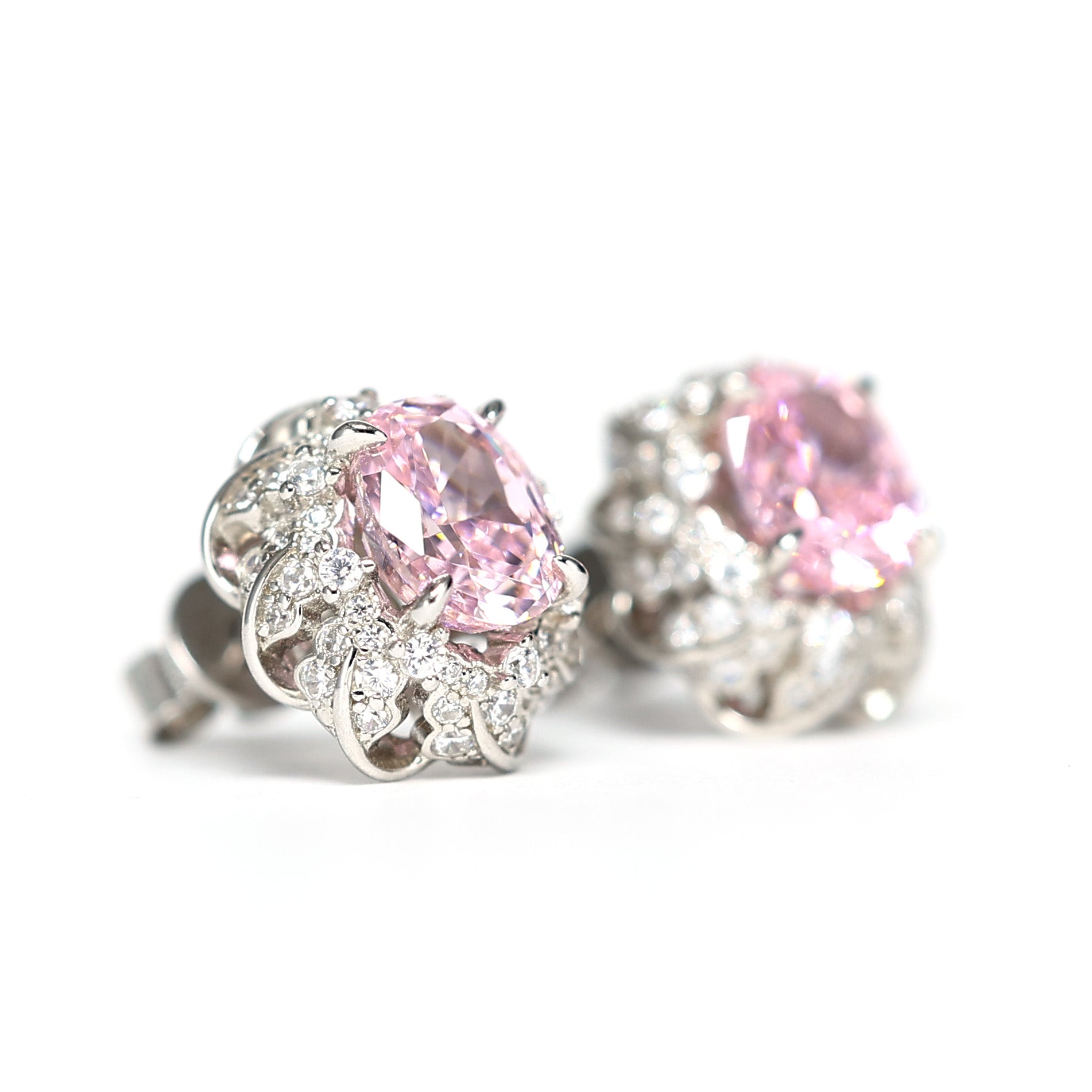 Micro-setting Pink color peach blossom earrings, sterling silver