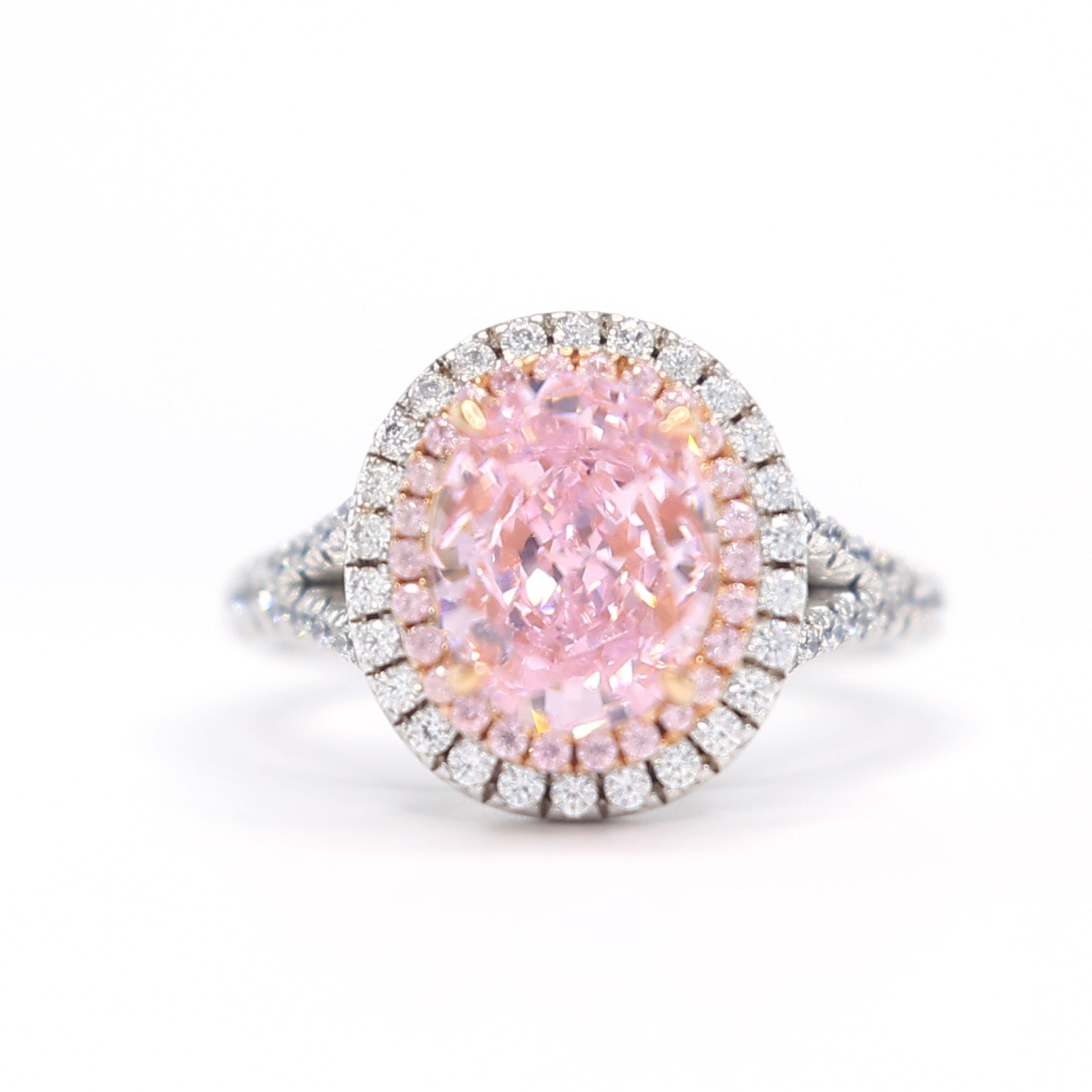 Micro-setting Pink diamond color Lab created stones pigeon egg shape ring, sterling silver.