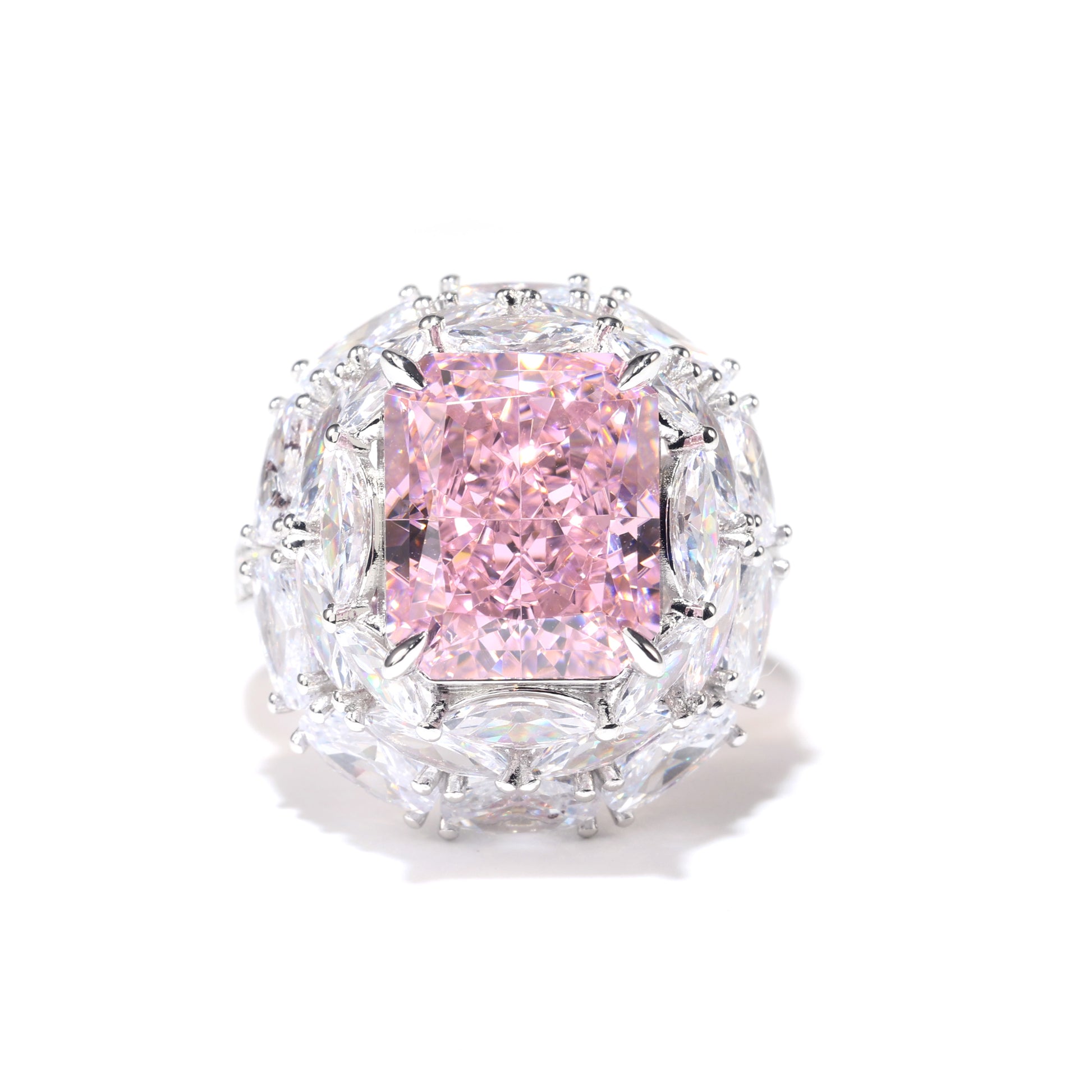Micro-setting Pink diamond color lab created stones the Summer garden ring, sterling silver