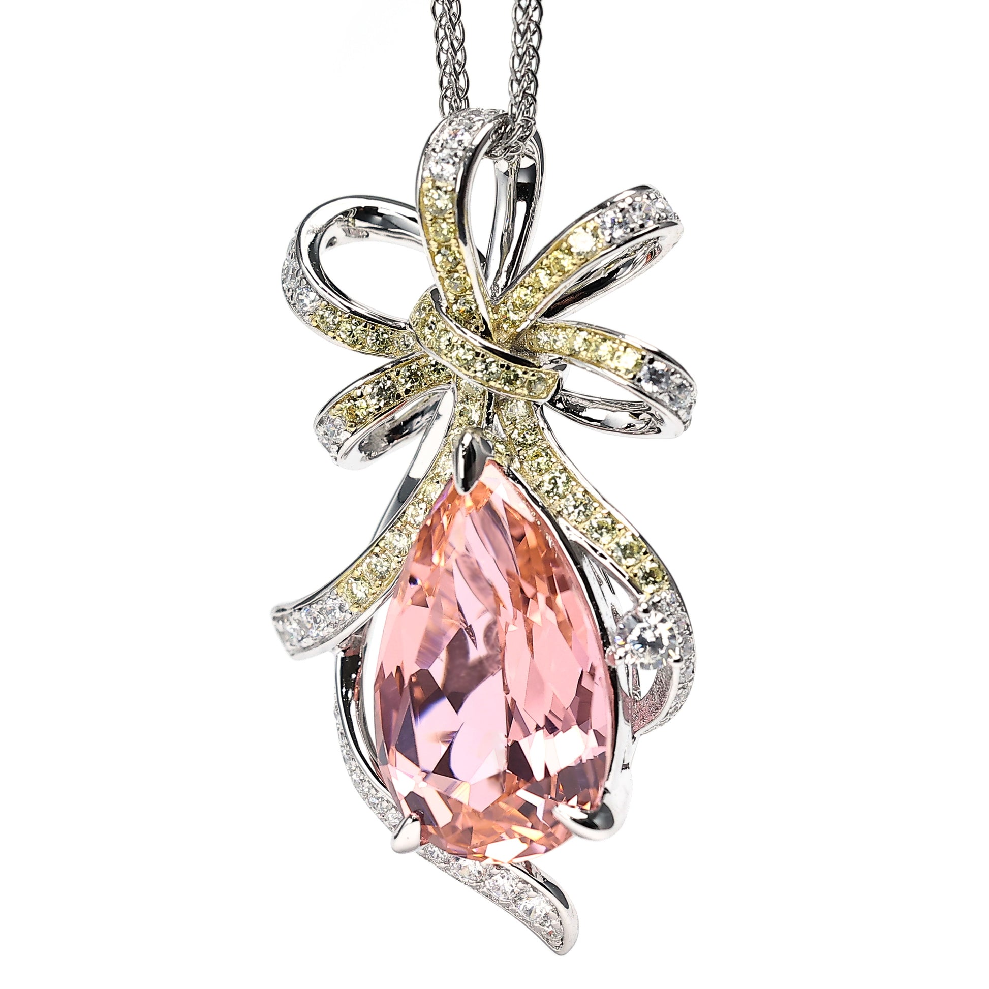 Micro-setting Pink morganite color Lab created stones waterdrop necklace, sterling silver