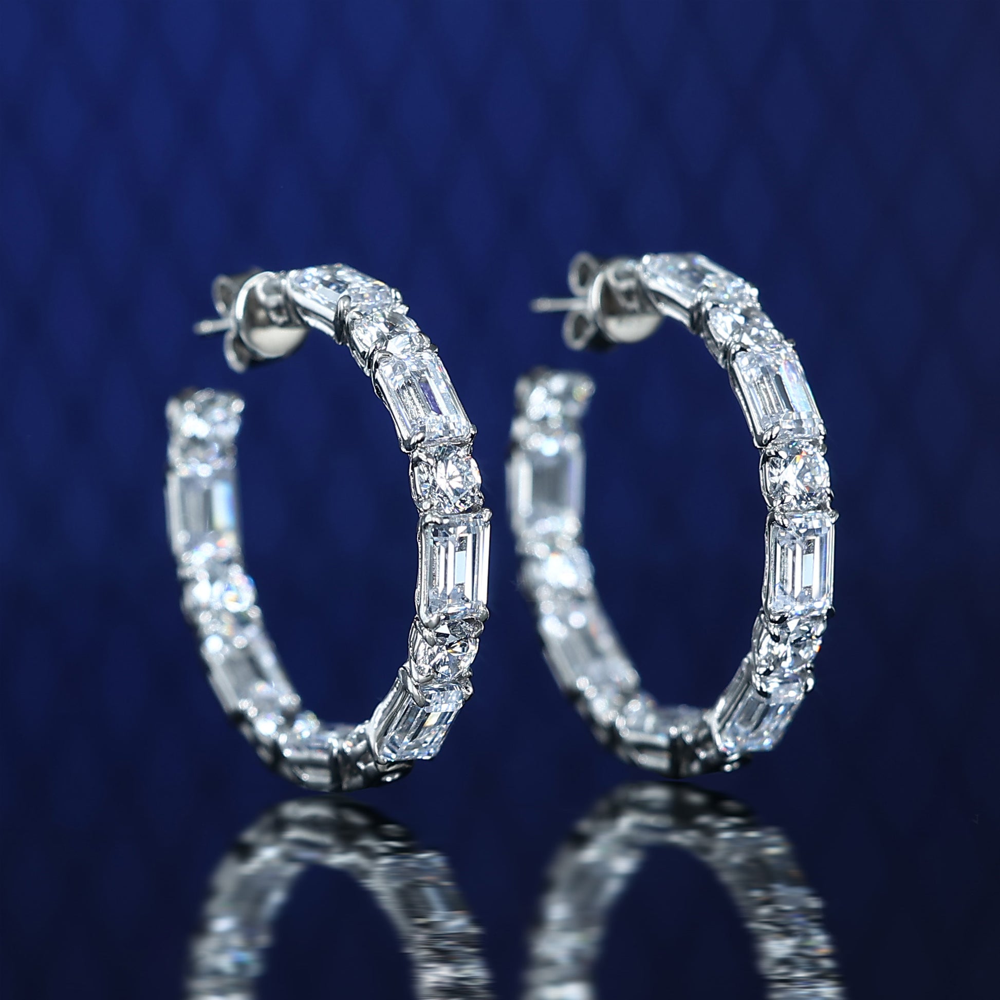 Micro-setting round and emerald cut lab created stones ear loop, sterling silver