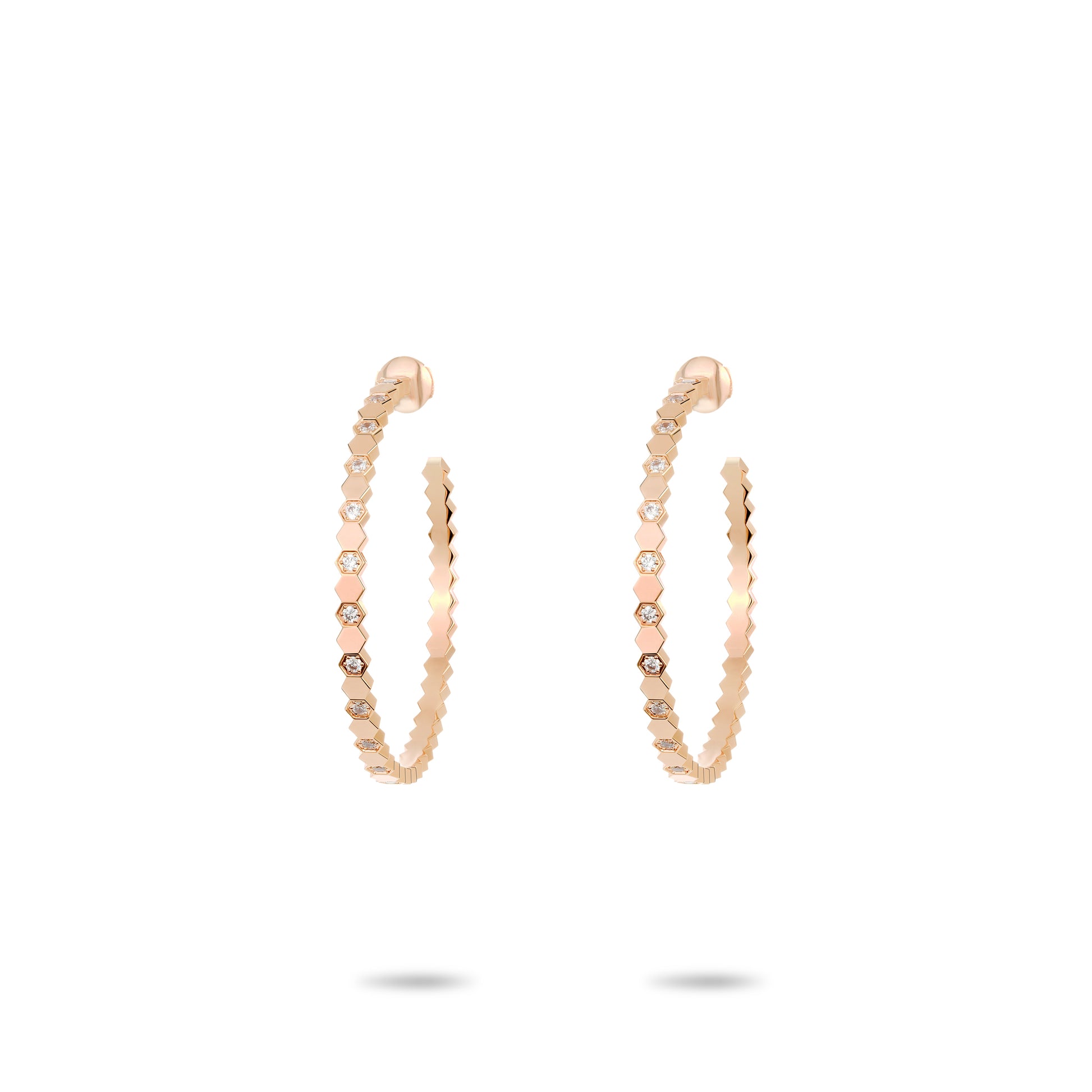 Rose-gold Fever collection: Modern "Rose Honeycomb" CNC Hoop Earrings (XL size)