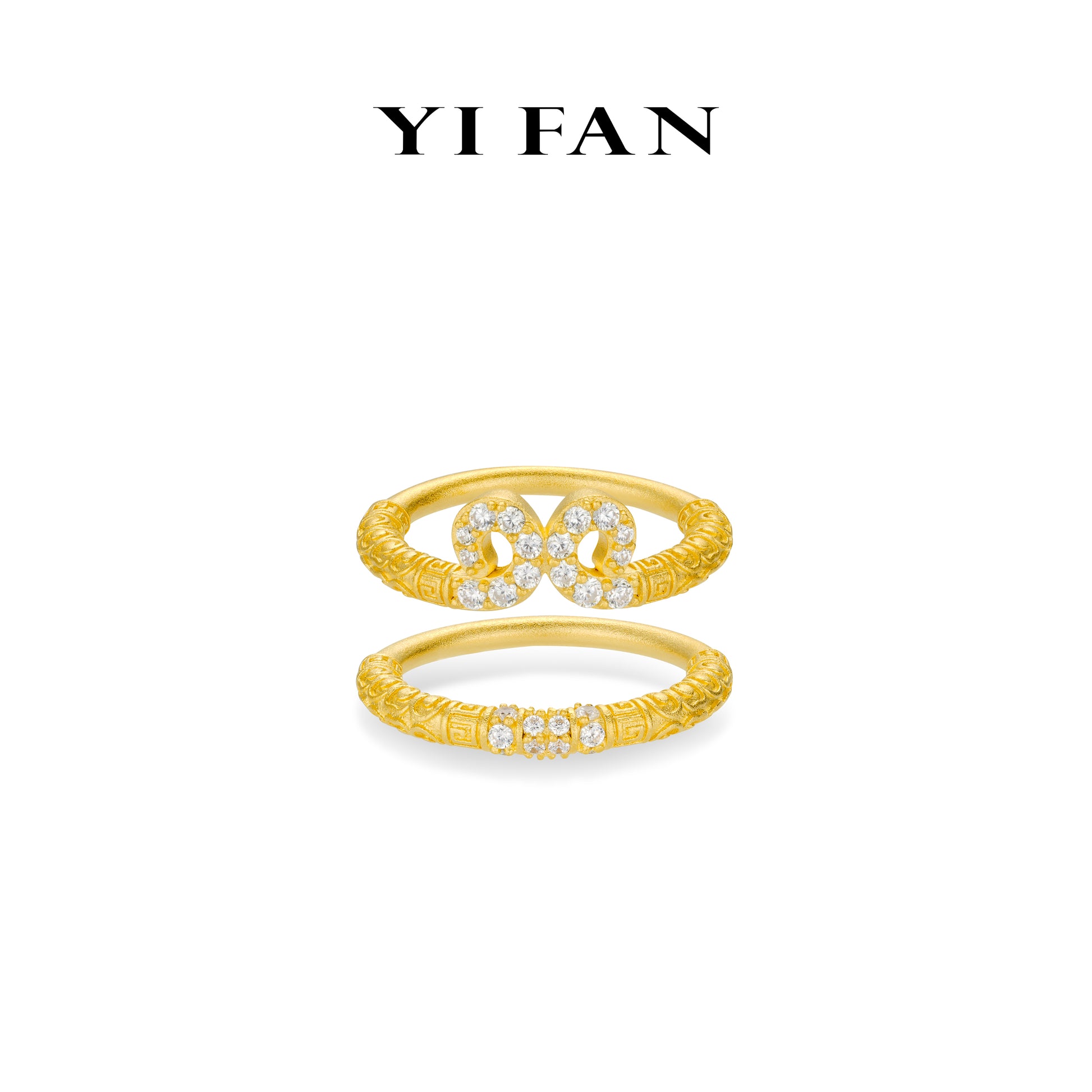 Golden time collection: Unique Hand-carved&Brushed "Incantation of the Golden Hoop" Set Rings (Unisex)