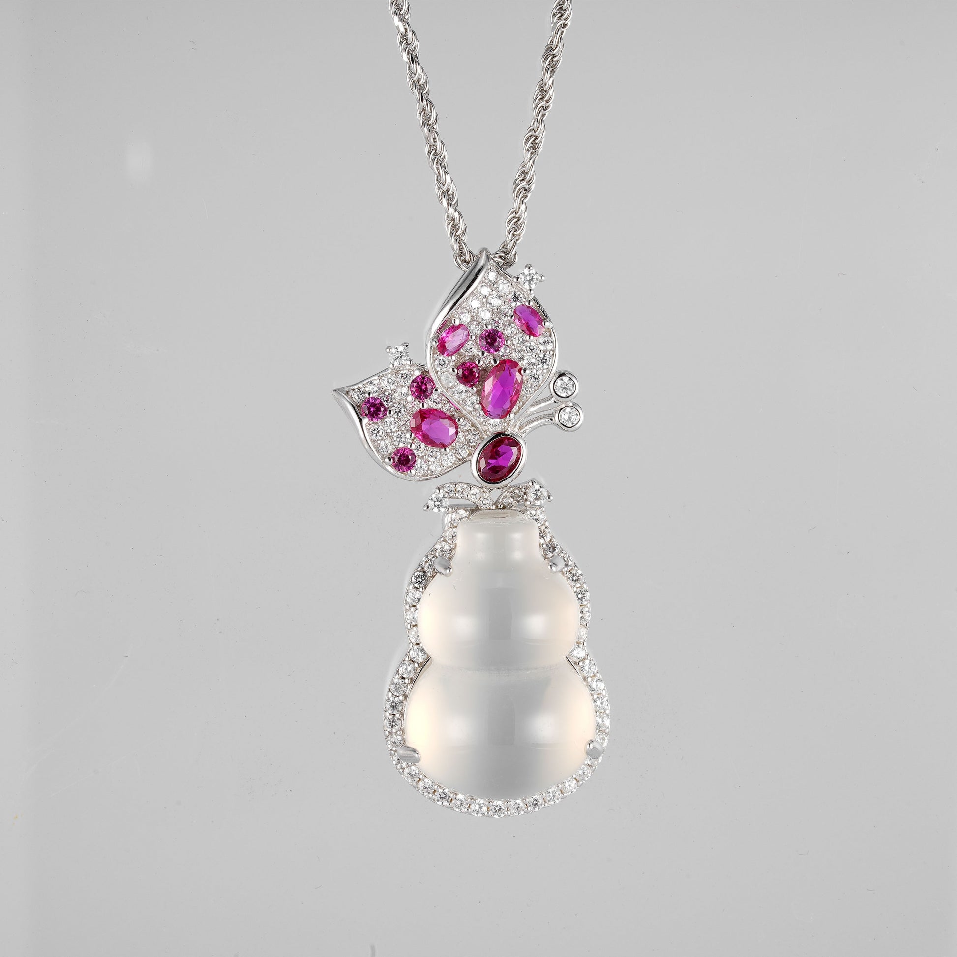 Micro-setting Lab created stones and White chalcedony in Bottle Gourd shape