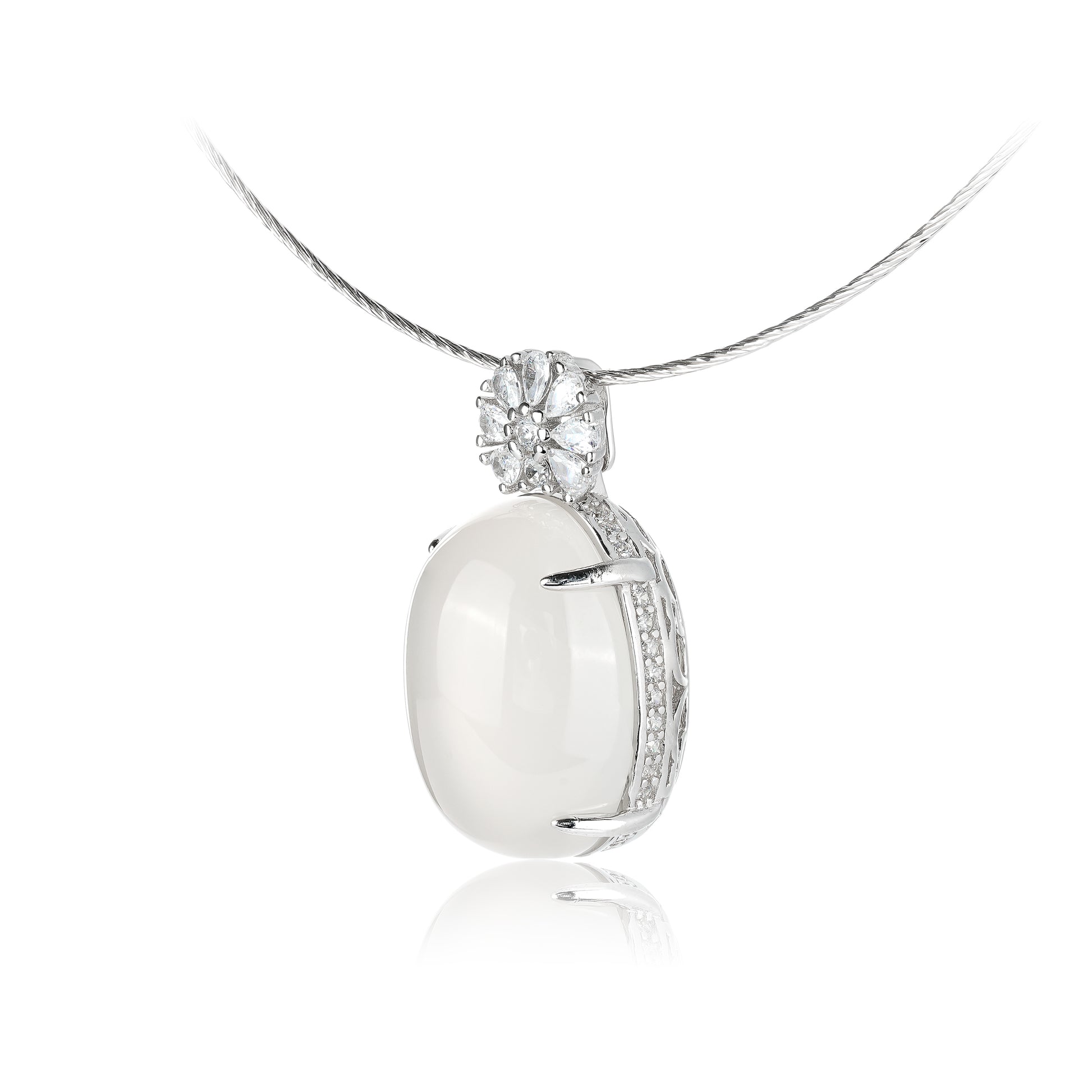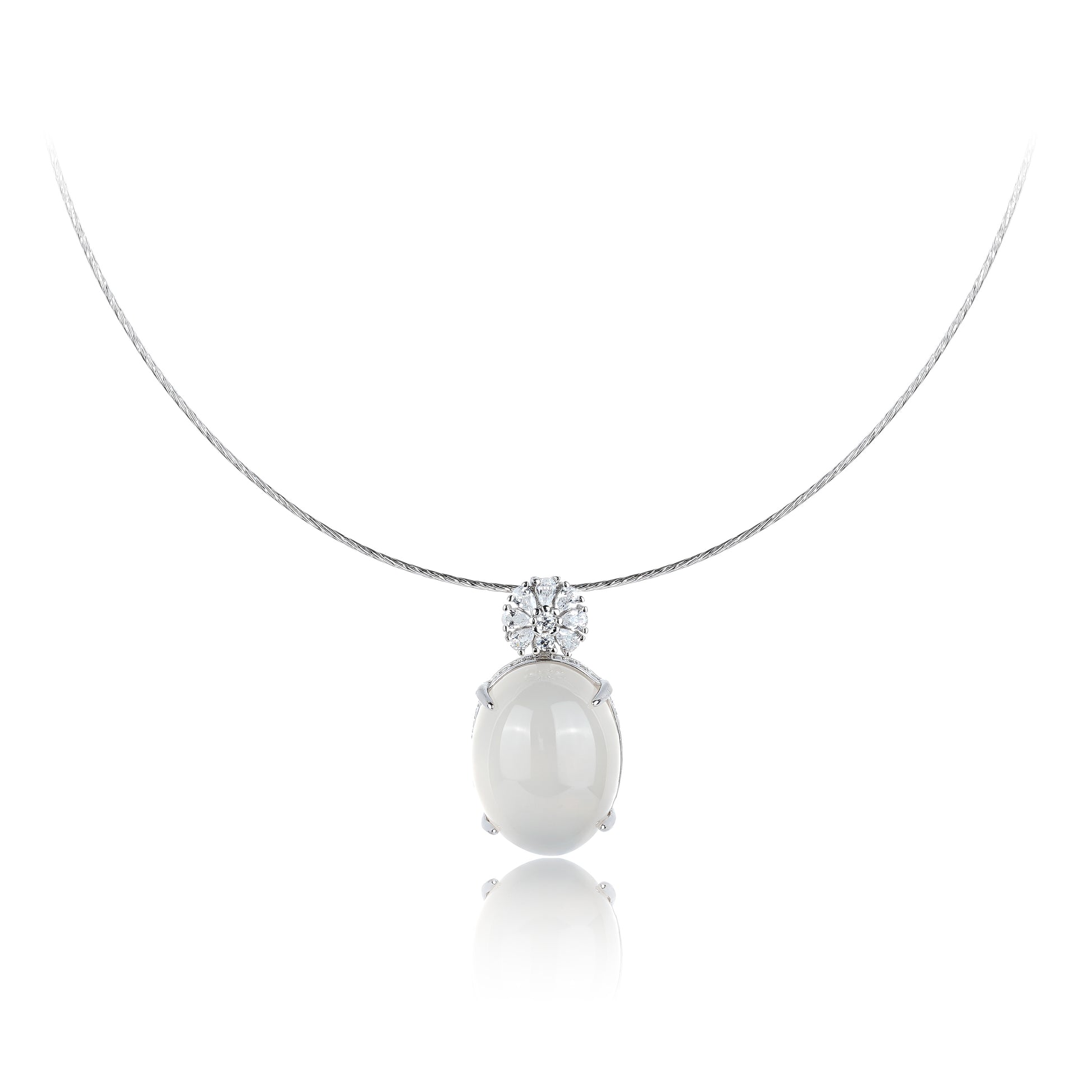 "Milky" collar necklace, meticulously crafted from White chalcedony, a cherished gemstone revered in Chinese tradition.
