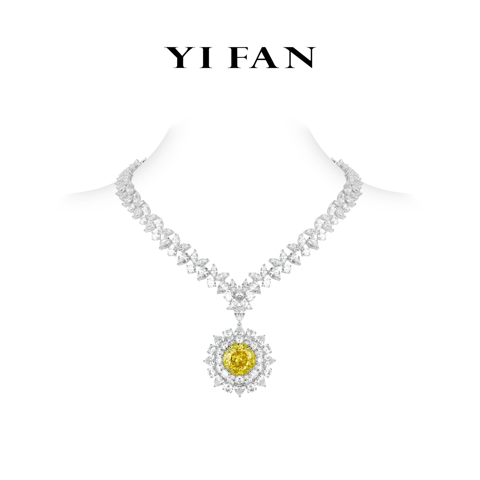 High Jewelry Yellow diamond color collection: Luxury "Floral Radiance Sunlit Daisy Sparkle" detailed Banquet Necklace