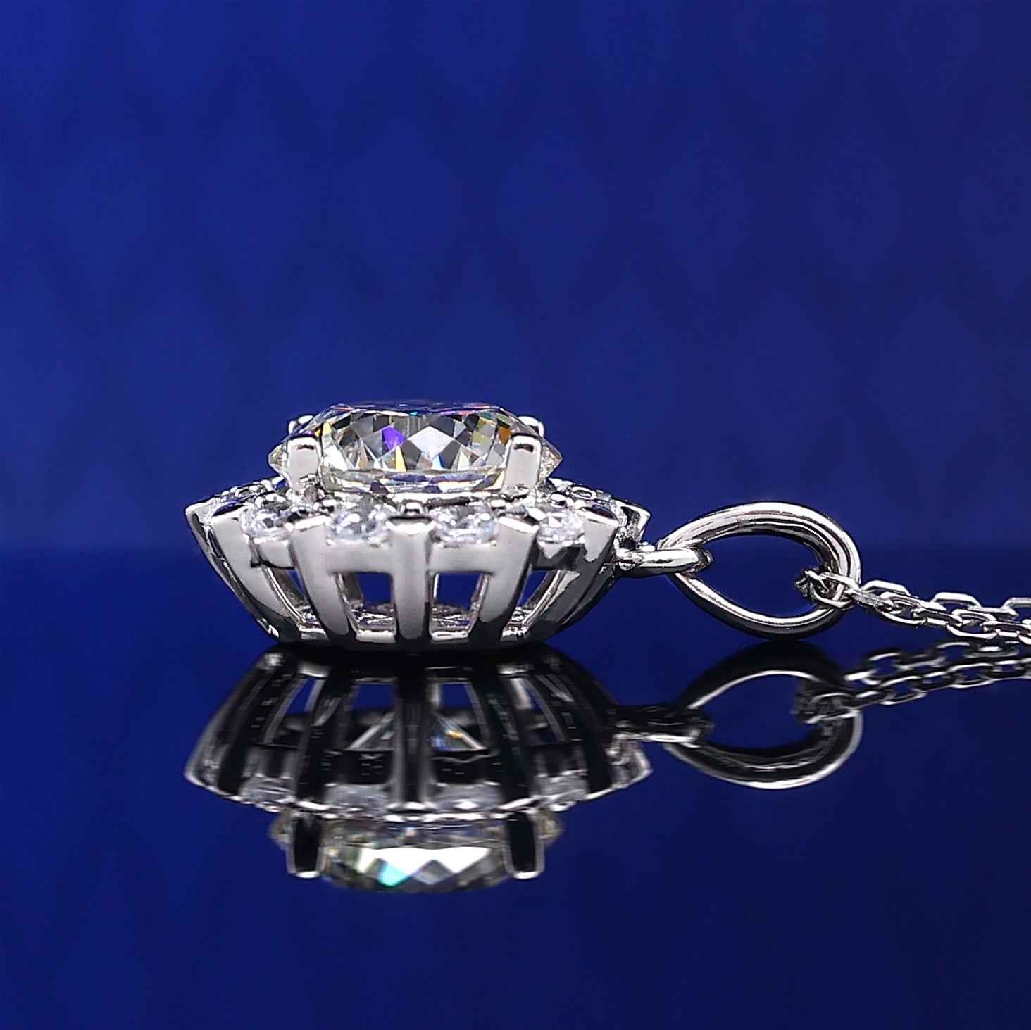 Micro-setting Firework cut Lab created stones necklace, sterling silver