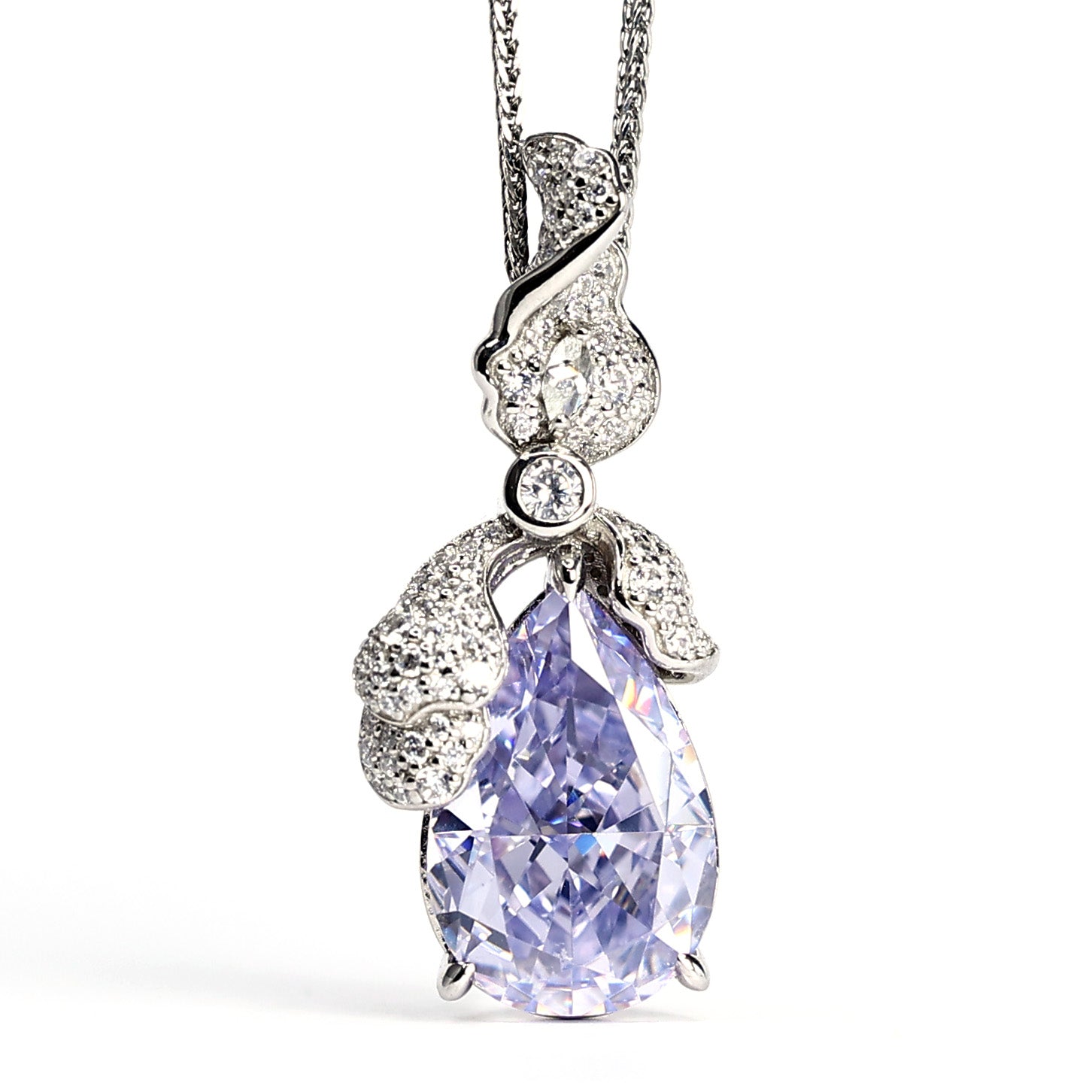 Micro-setting Lavender color lab created stones waterdrop necklace, sterling silver.(22carat)
