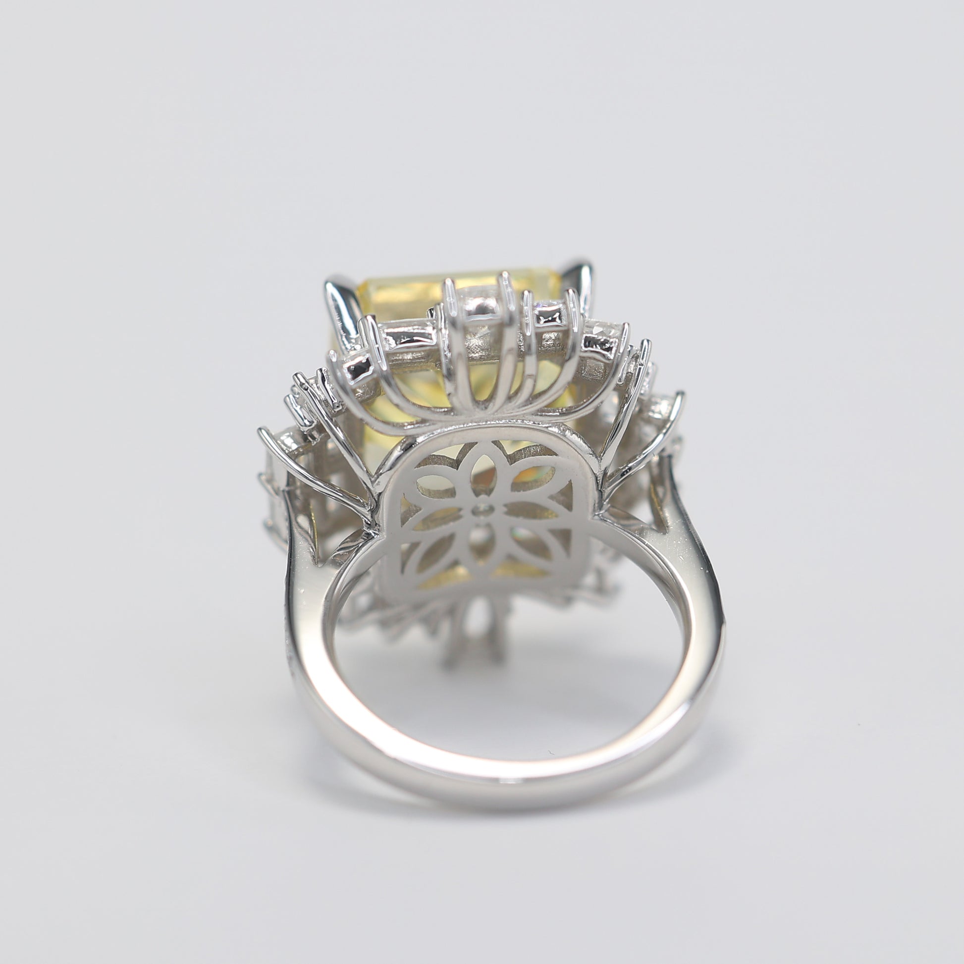Micro-setting yellow diamond color Lab created stones city reflection ring, sterling silver