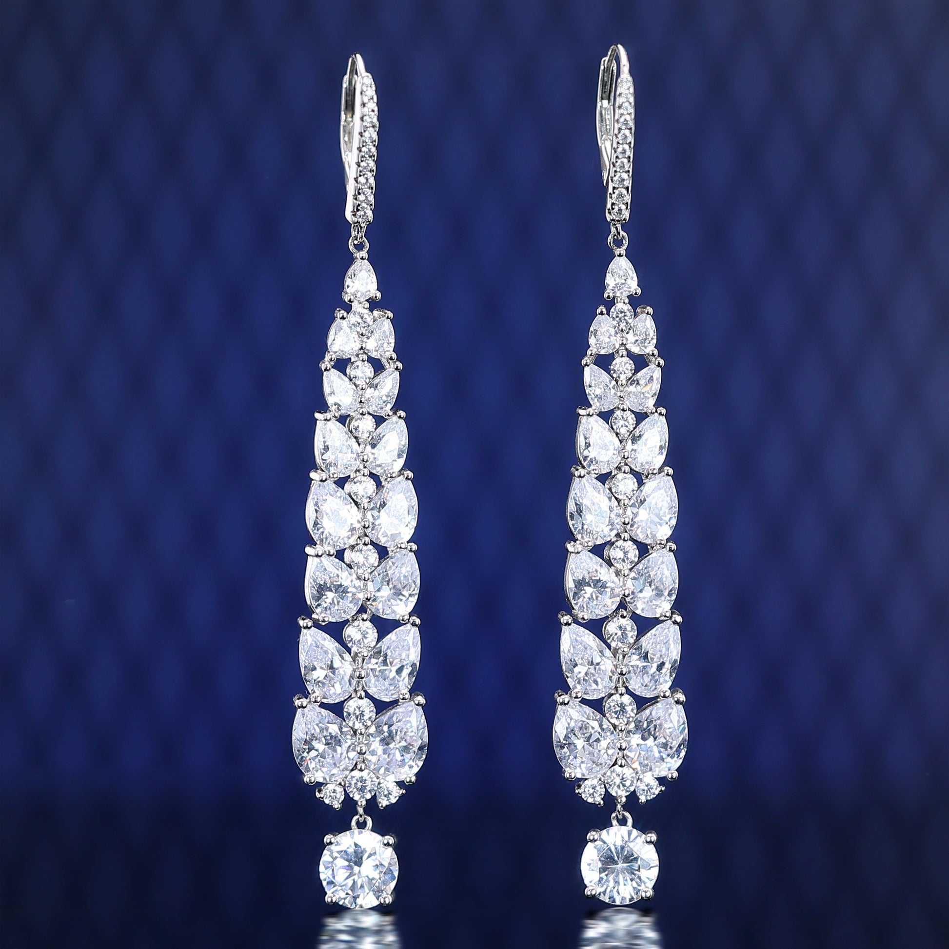 Only 1 Special offer Micro-setting Clear color lab created stones teardrop dangle earrings, sterling silver