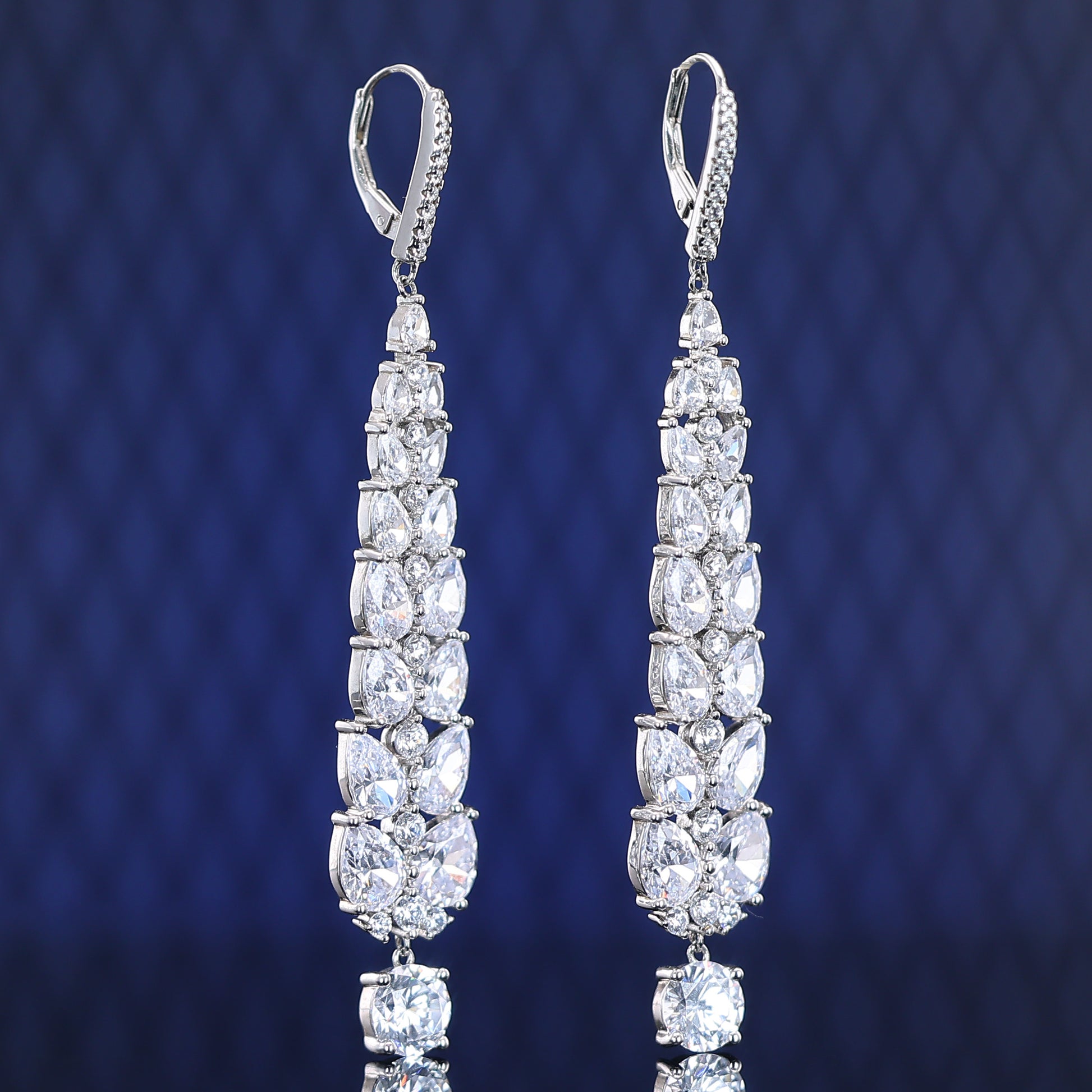 Only 1 Special offer Micro-setting Clear color lab created stones teardrop dangle earrings,