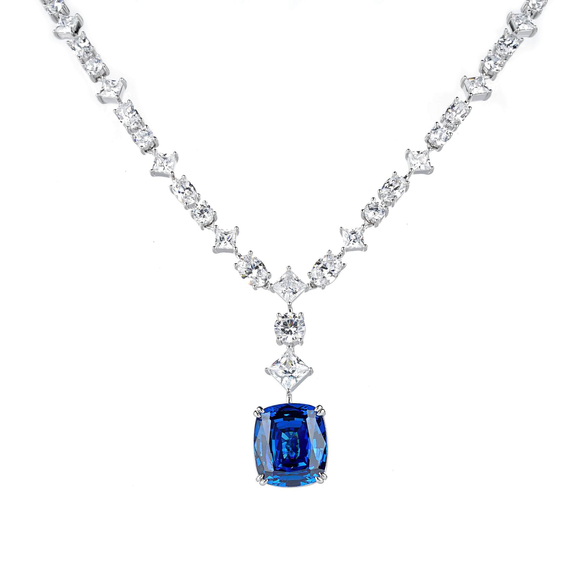 Modern Exquisite Blue cube Tennis Necklace.