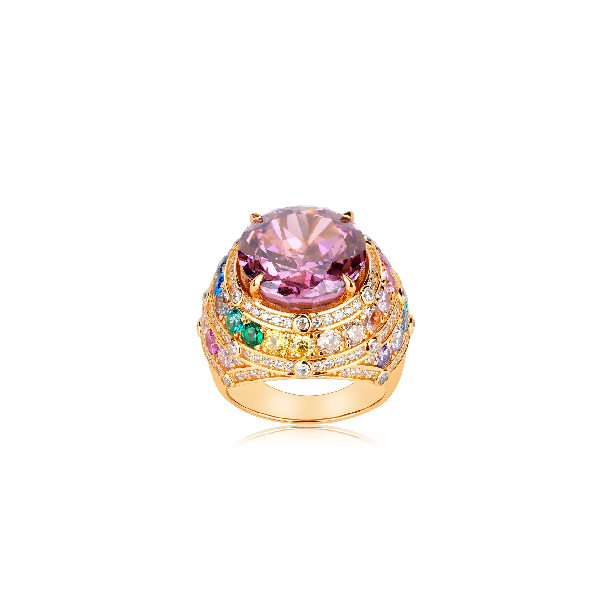 The centerpiece of this ring boasts a vibrant purple Eco-friendly artificial diamond, symbolizing creativity, imagination, and the allure of luxury.