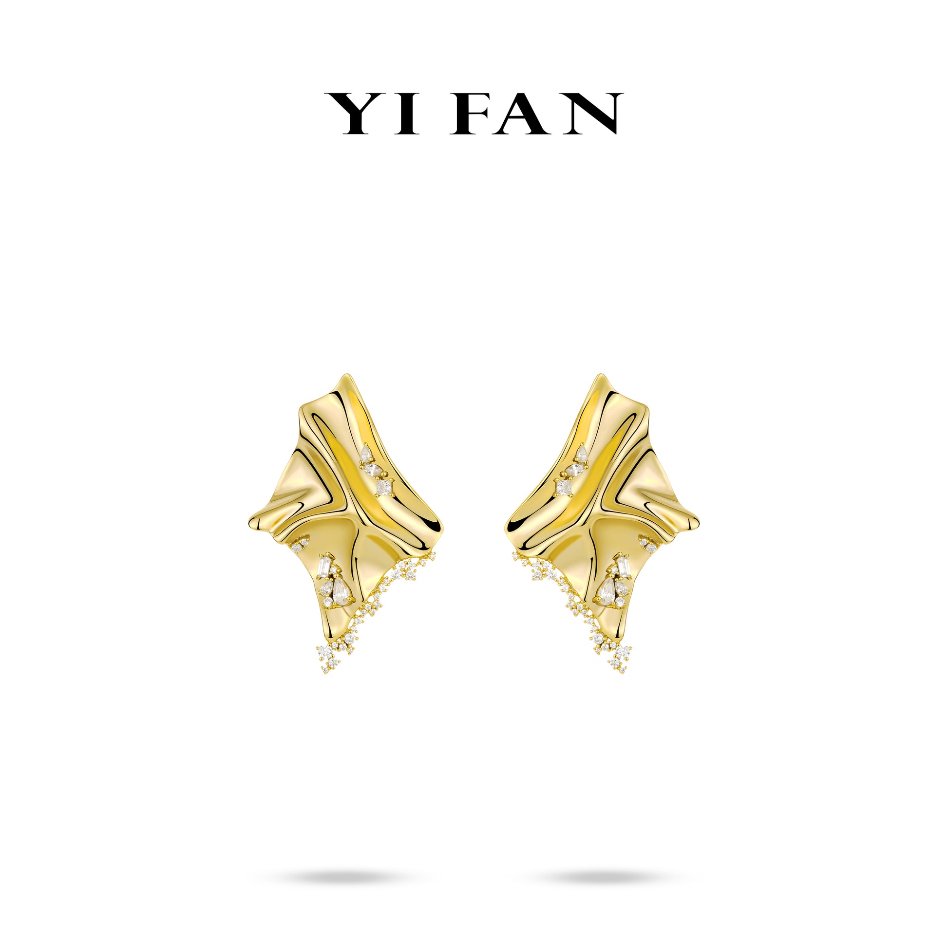 Limited Golden time collection: Unique Mixed-cutting "Dazzling Wrinkled Waves" detailed Large Earrings
