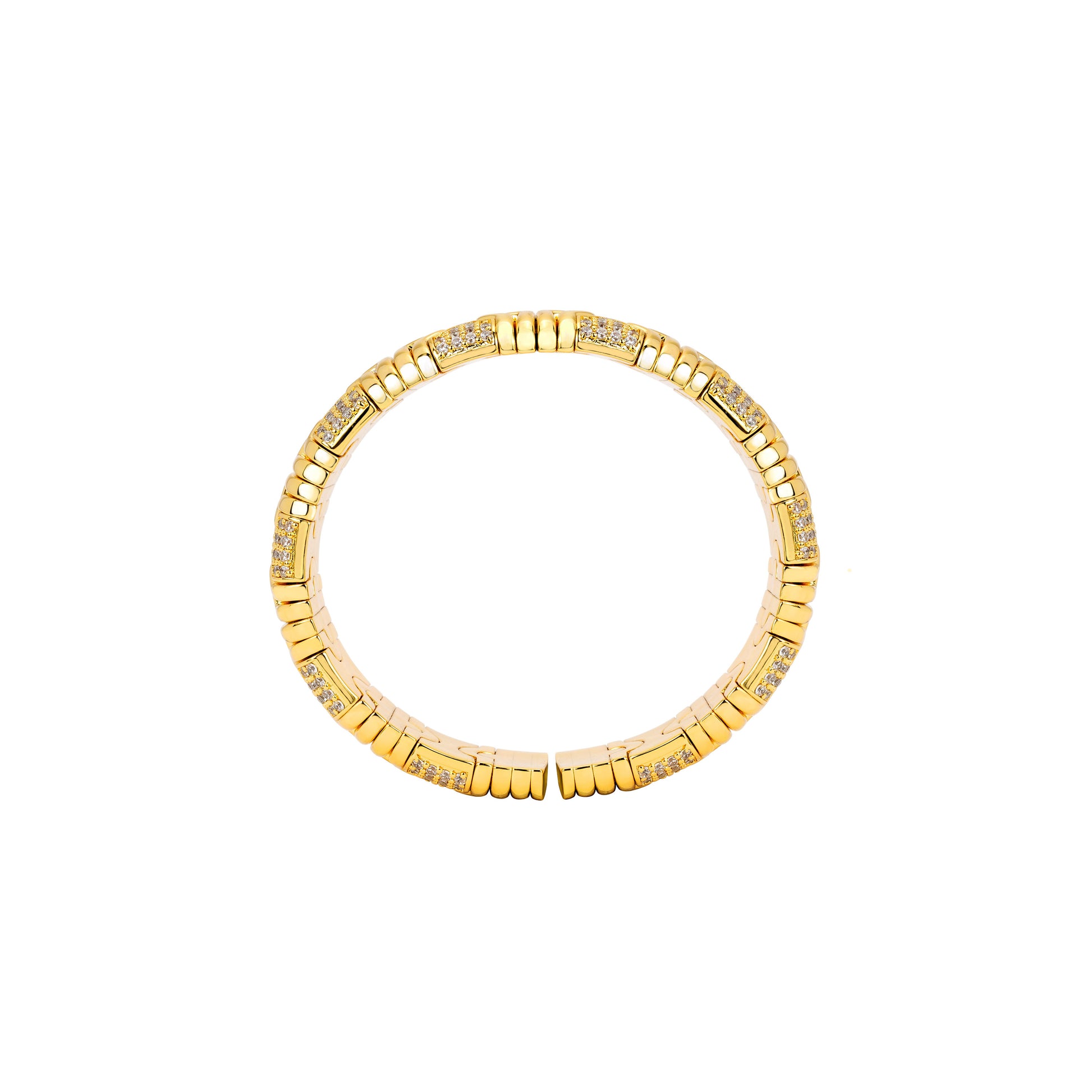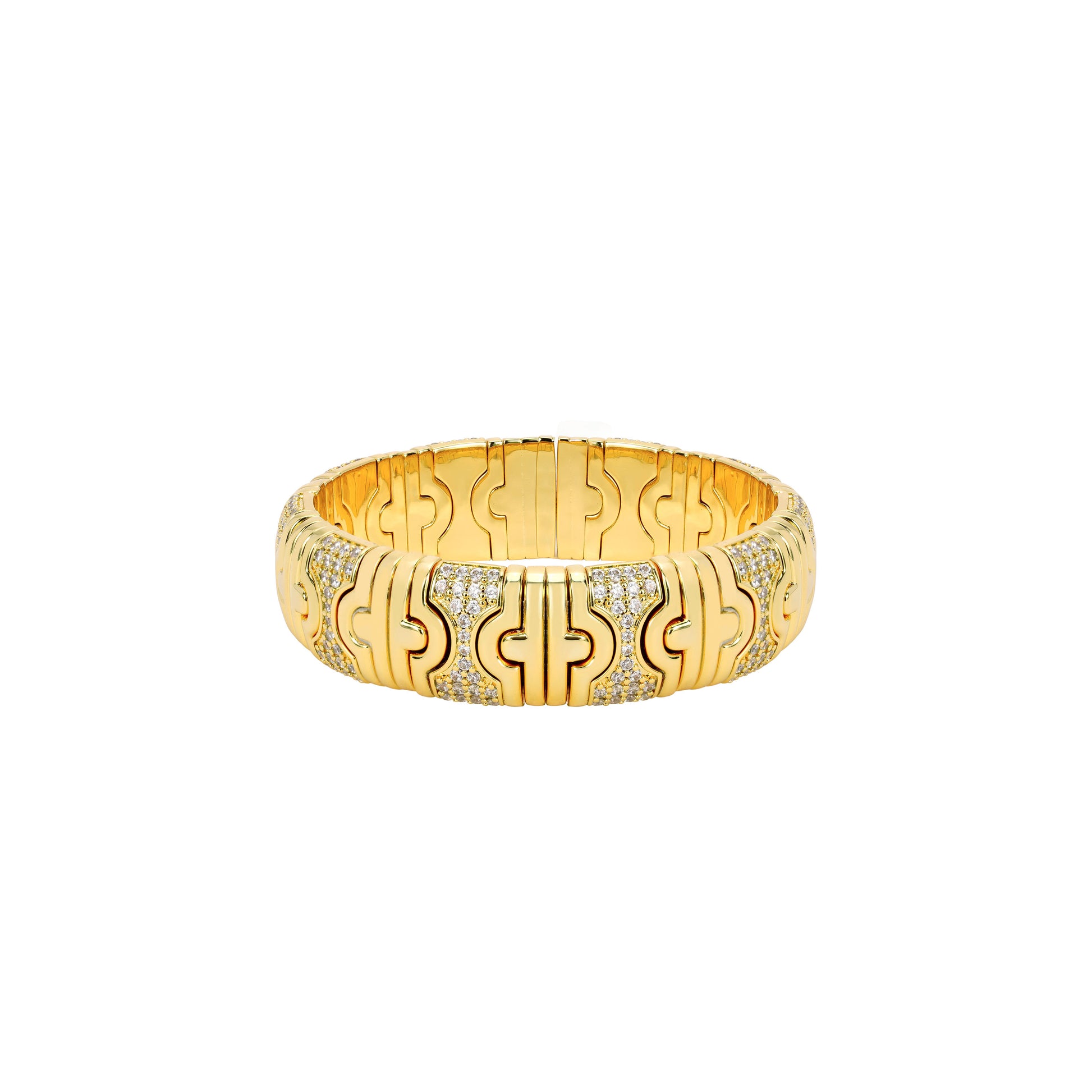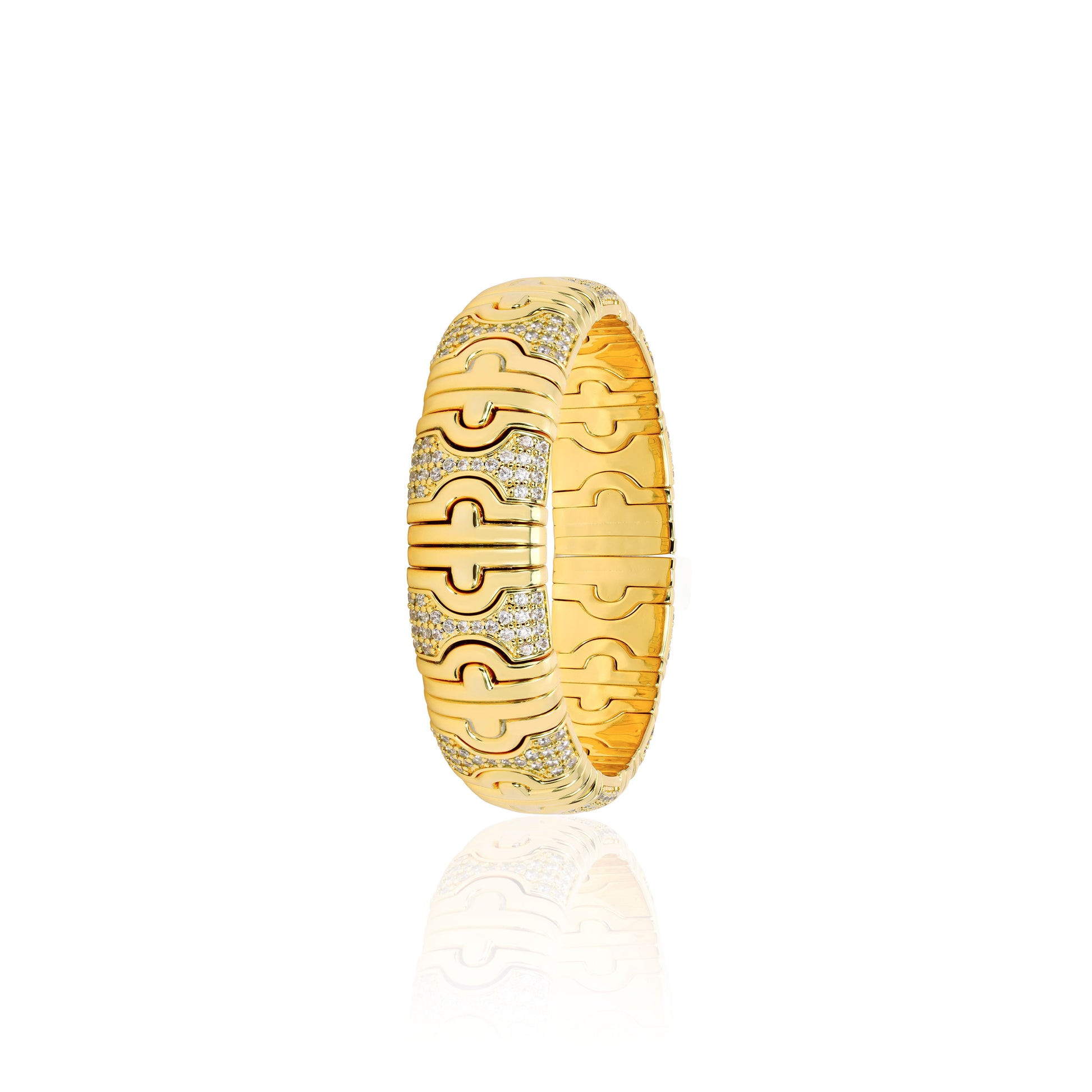 Micro-setting Lab created stones Versatile Golden Elastic wide band Bangle, sterling silver.