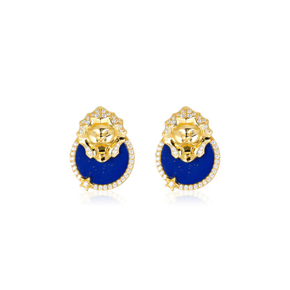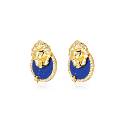 Vintage Queen's Lapis Lazuli Lion Medallion earrings (Unisex)