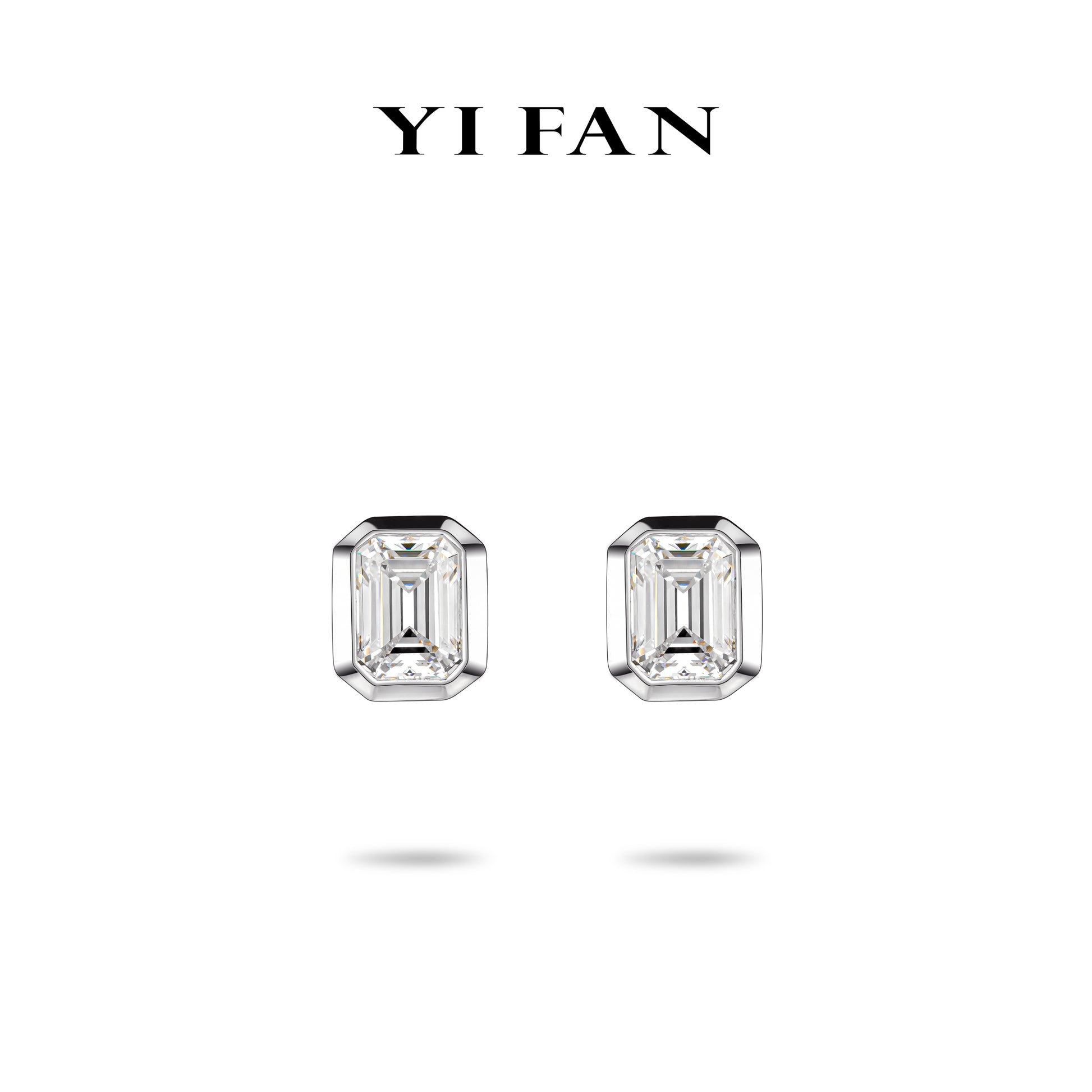 Emerald-cut collection: Modern Bezel-setting "Emerald-cut Ice Cube" Ear studs