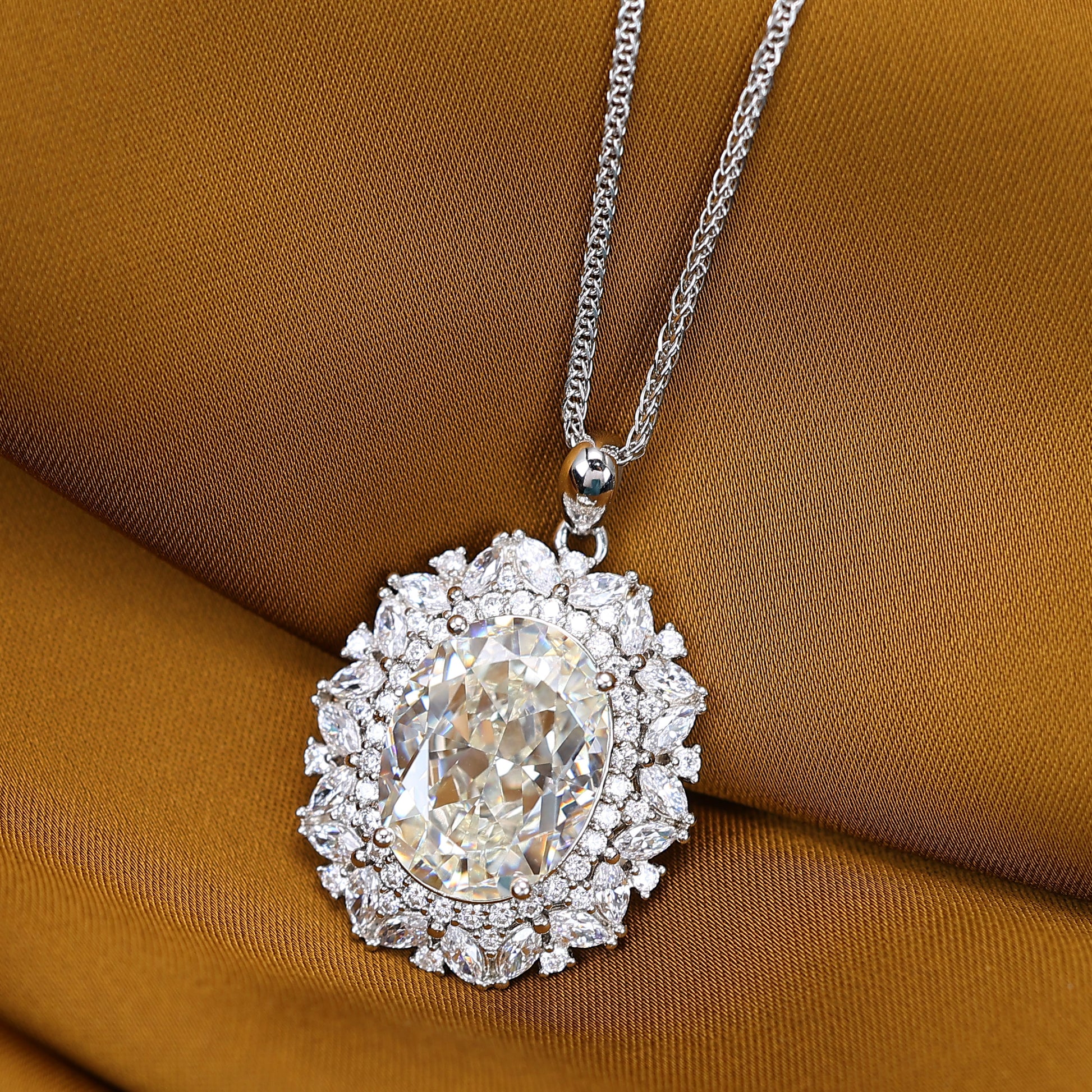 Modern Icy-cut "Pigeon egg Rock" detailed Lace Pendant Necklace.