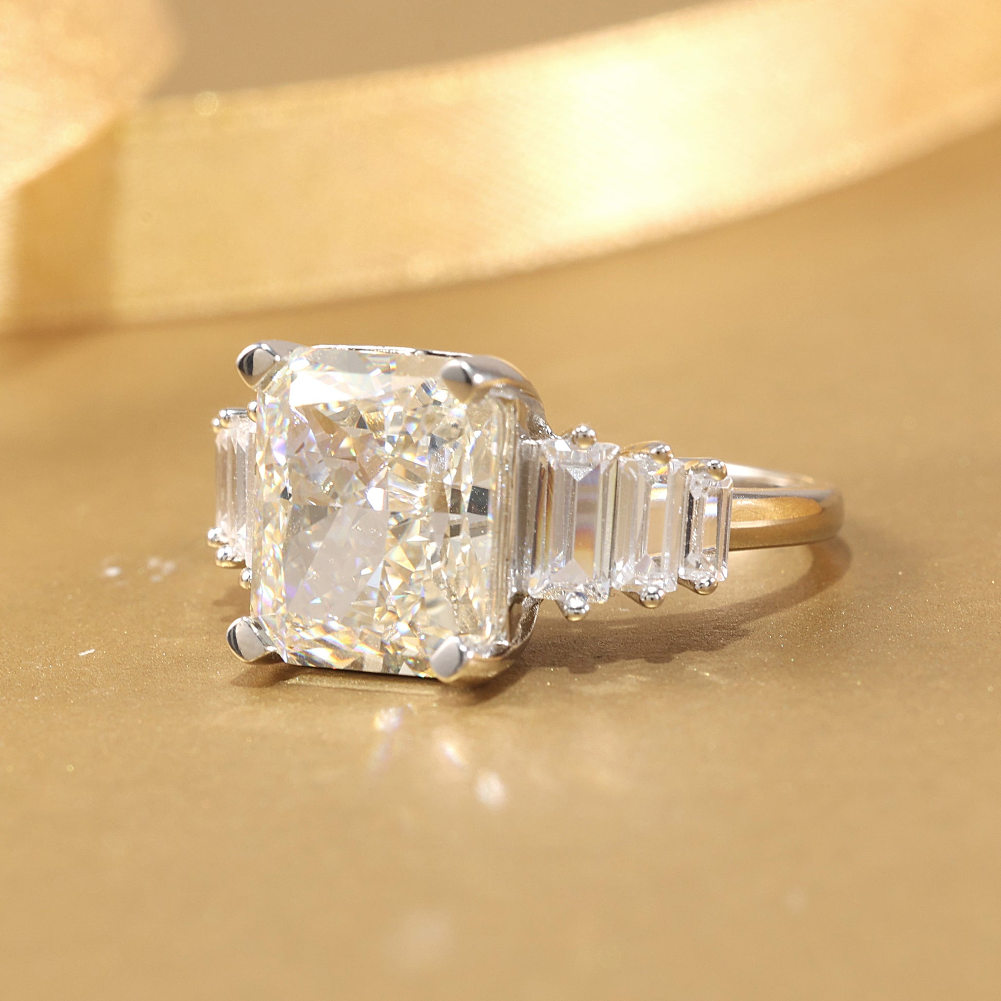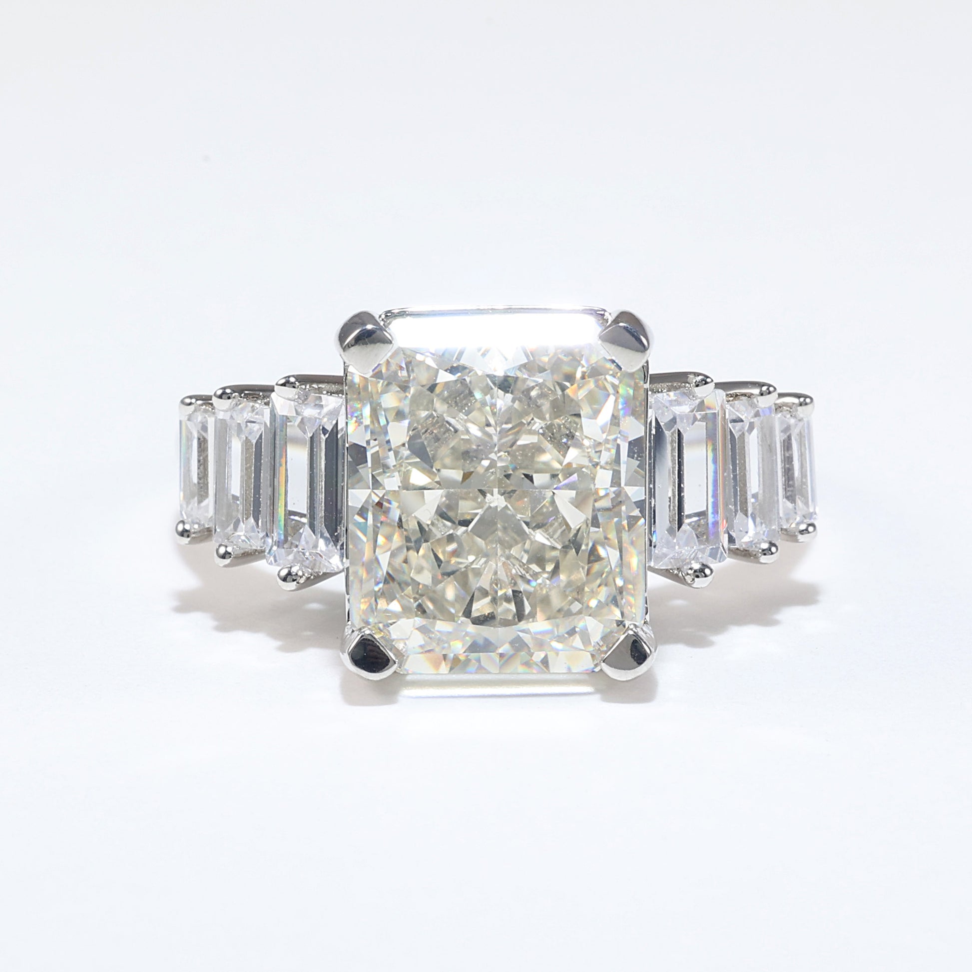 G color Icy cut Lab created 7 stones ring, sterling silver. (13.5 carat in total)