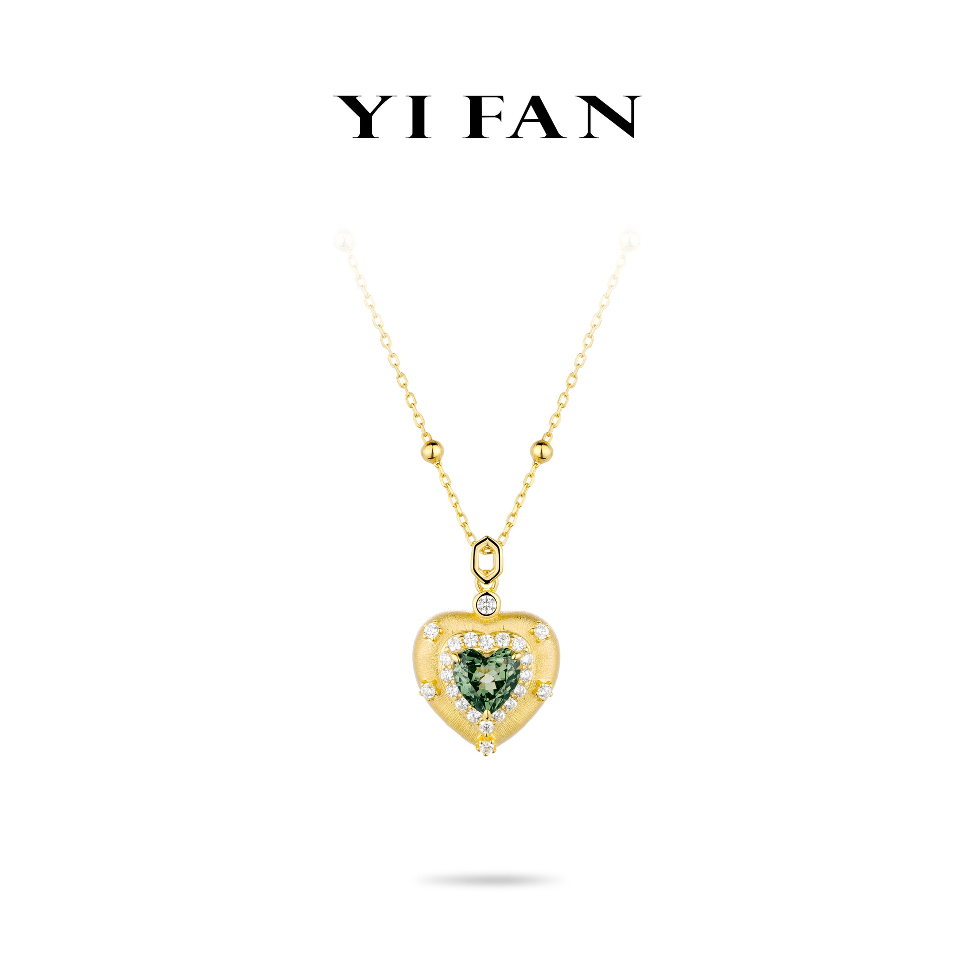 Golden time collection: Modern "Brushed Dazzling Green Heart" detailed Pendant Necklace