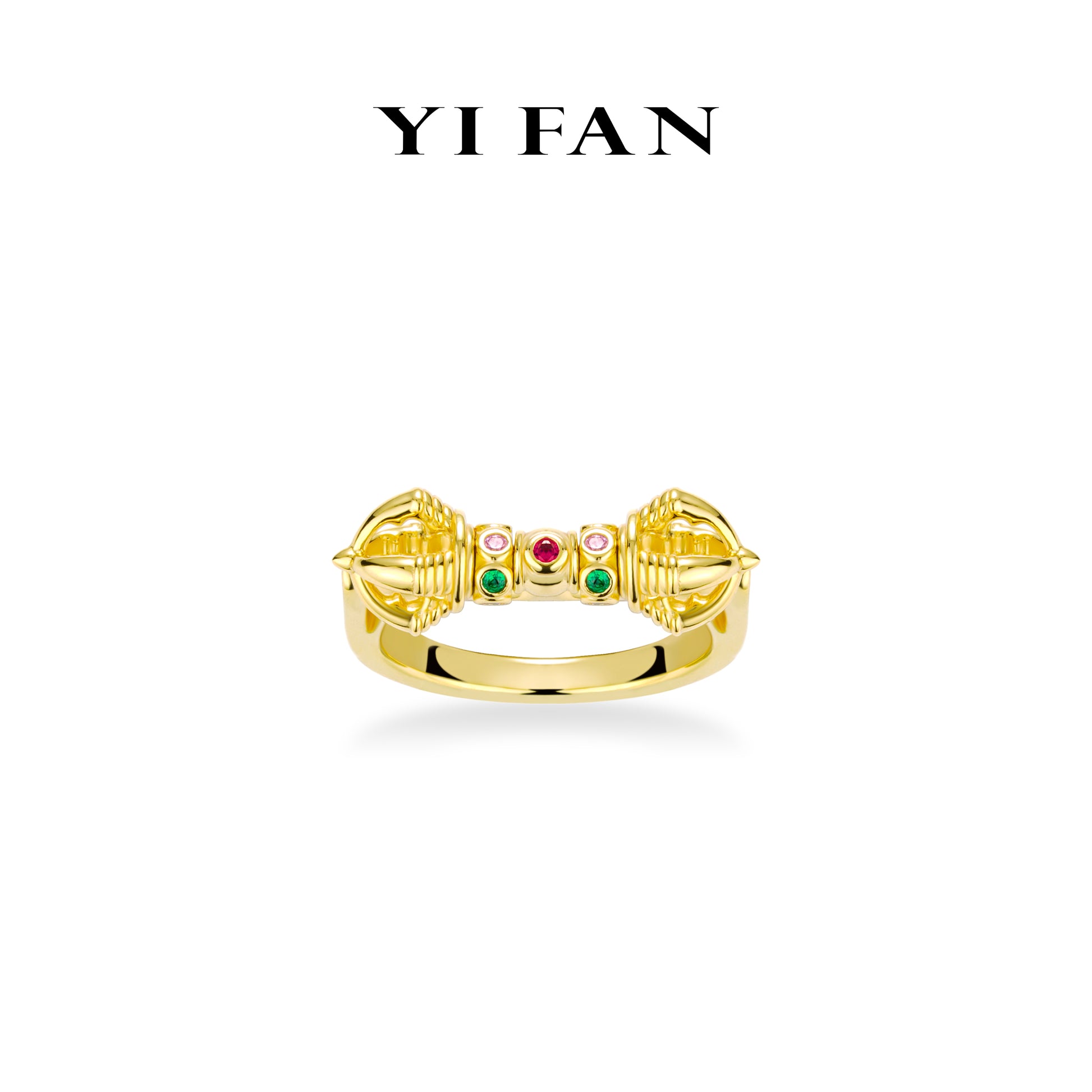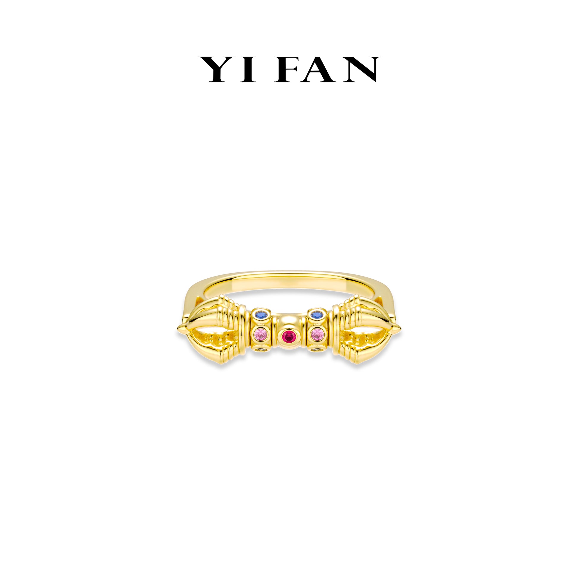 Golden time collection: Modern "Colorful Vajra Pestle" detailed Rotating/Fidget Ring